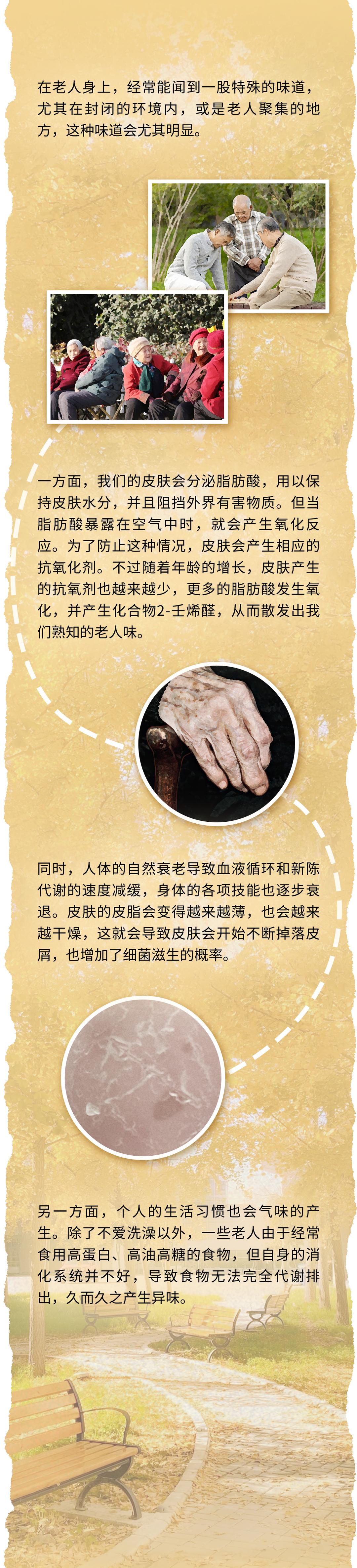 · 老人味同樣也可能是疾病的信號,當患有某些疾病時,皮膚、呼吸道、腸胃道也會產生特殊的氣味。