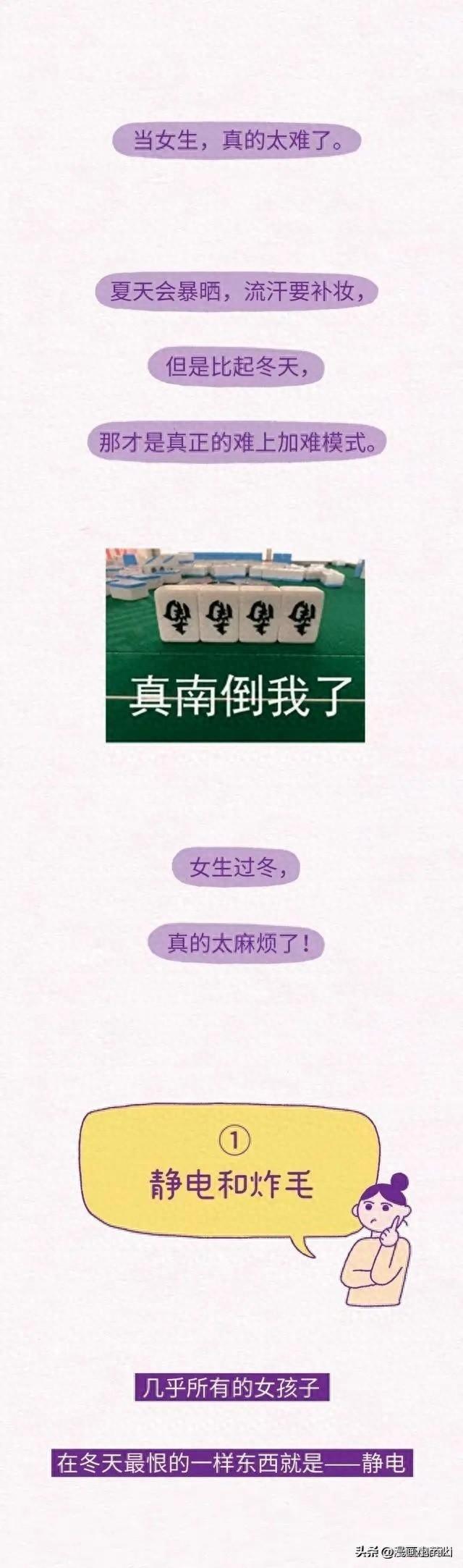 冬天頭髮總起靜電咋辦?漫畫揭祕,冬天女生的“生存法則”