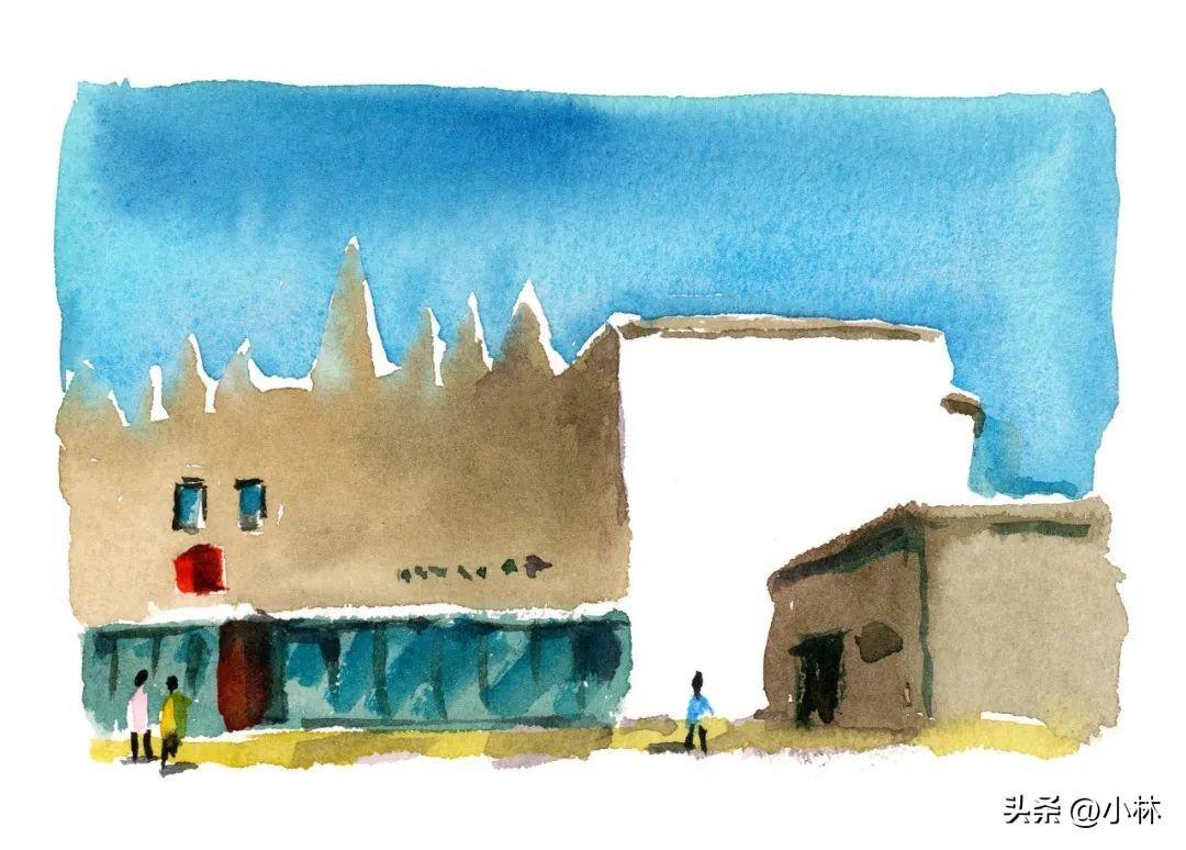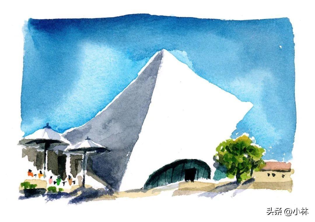 在門口一邊喫牛排一邊畫的這張寫生。因爲太過於專注喫飯,這張畫得並不好,所以我在原地又畫了一張,就下面這張,換了一種畫法:
