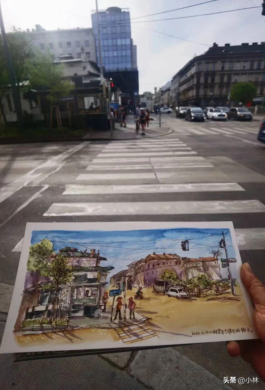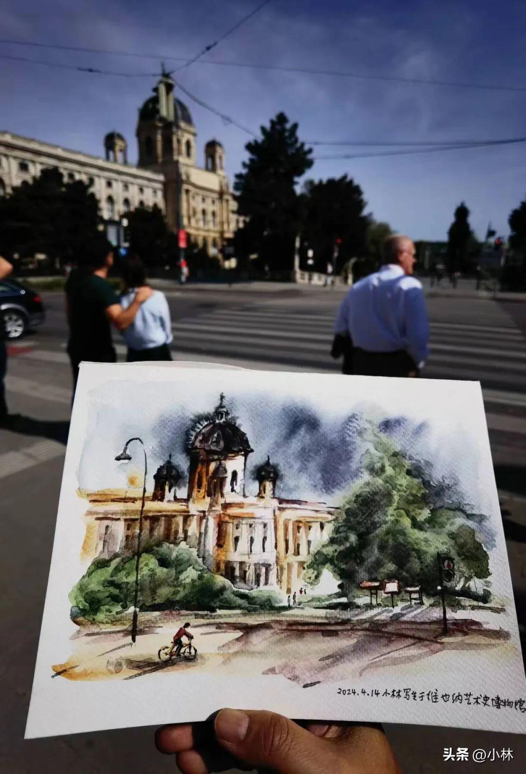所以開幕式一結束,小林就跑到維也納的街頭蹲着畫畫去了。