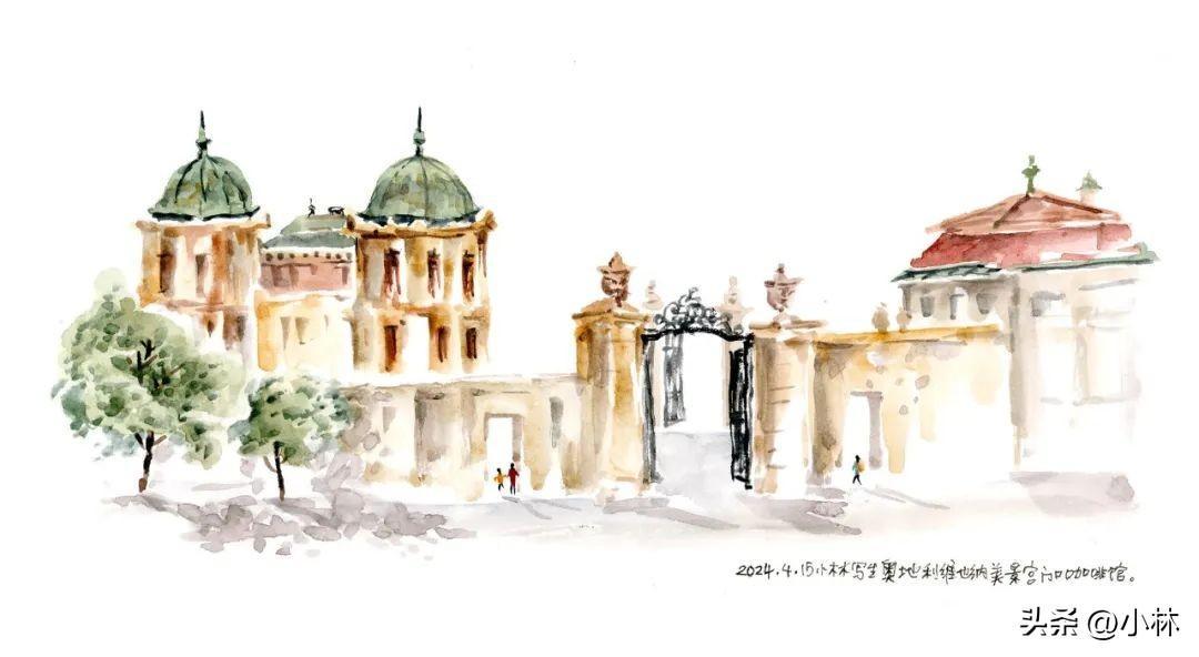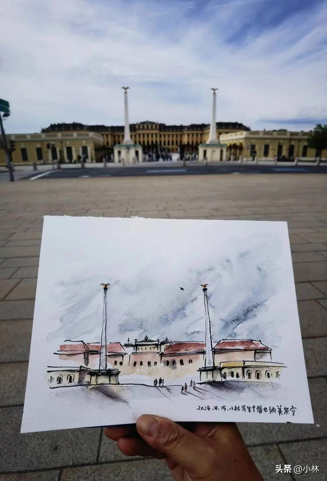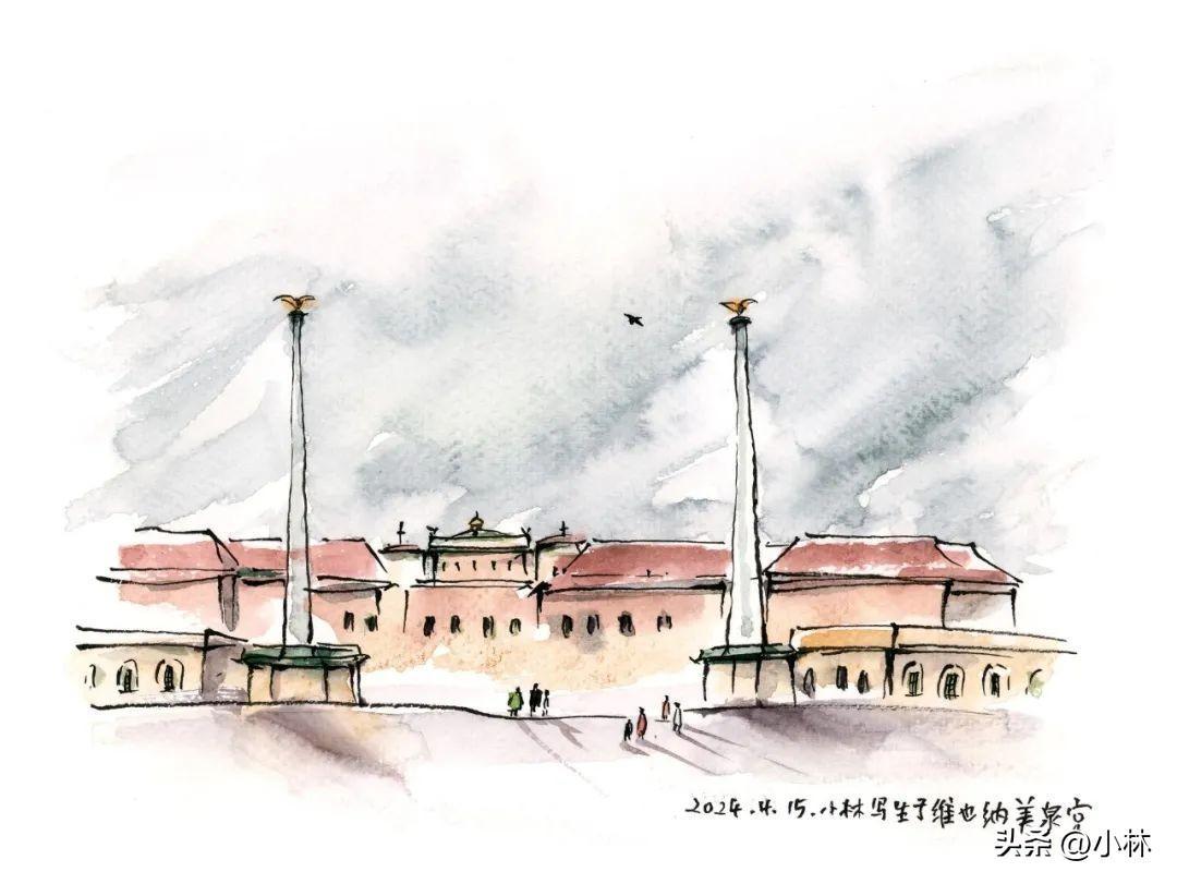 也是美泉宮等進門的時候,蹲在廣場上畫的,這張實在是太太太匆忙了,畫得不好,翻車了。
