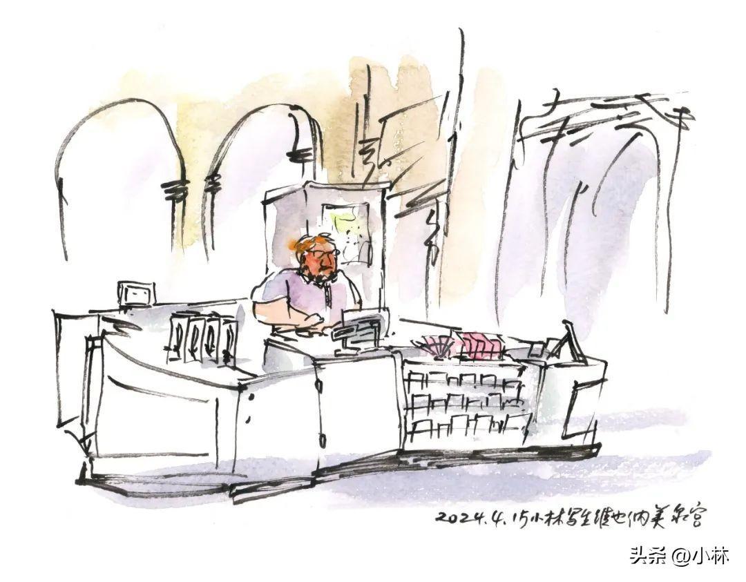 於是我站在美泉宮門口,站着畫了這張紀念品櫃檯的寫生。