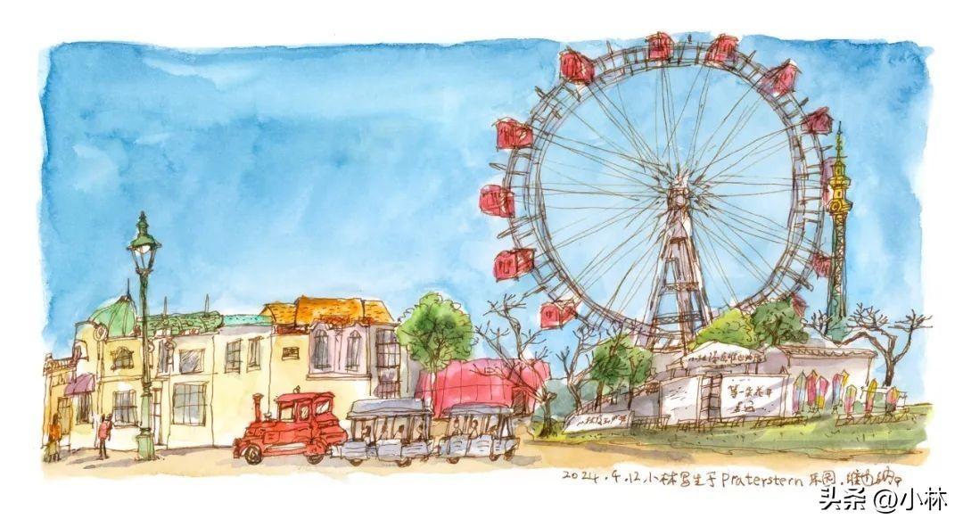 等待自己的漫畫展開幕的時候,給自己的漫畫展畫了張寫生,普拉提遊樂園在維也納市中心,超級超級大,超級超級人多。