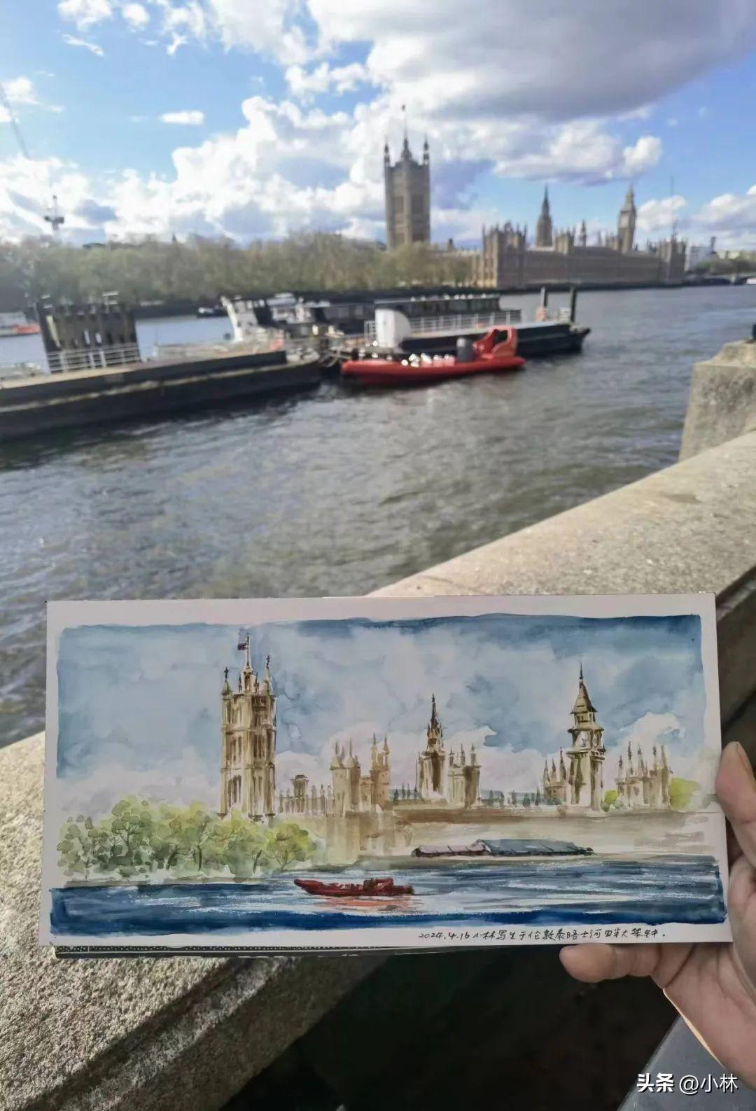維也納經倫敦轉機回國,到倫敦停留了幾個小時,只去了泰晤士河邊,畫了一張大笨鐘的寫生。