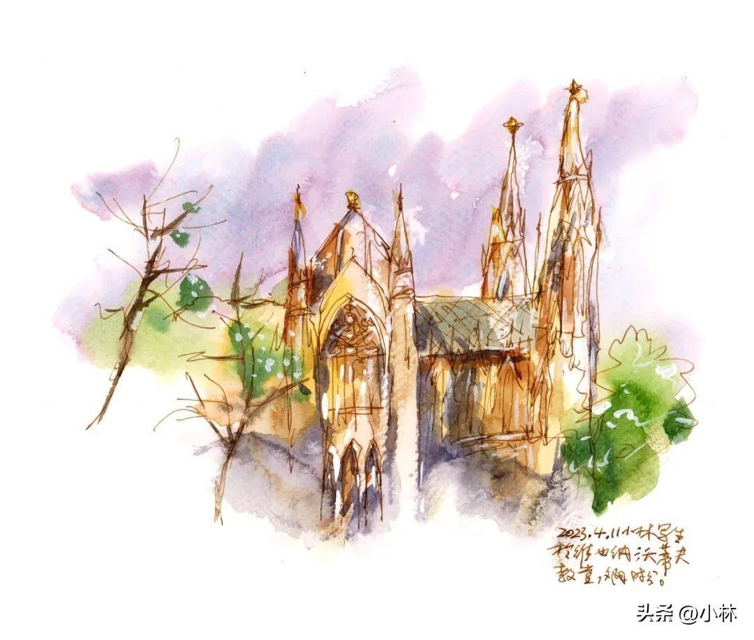 這張也是蹲着畫的寫生,以前畫這種複雜的建築和雕塑,會有點慫,這幾個月的全球寫生訓練下來,慢慢有點找到辦法了。