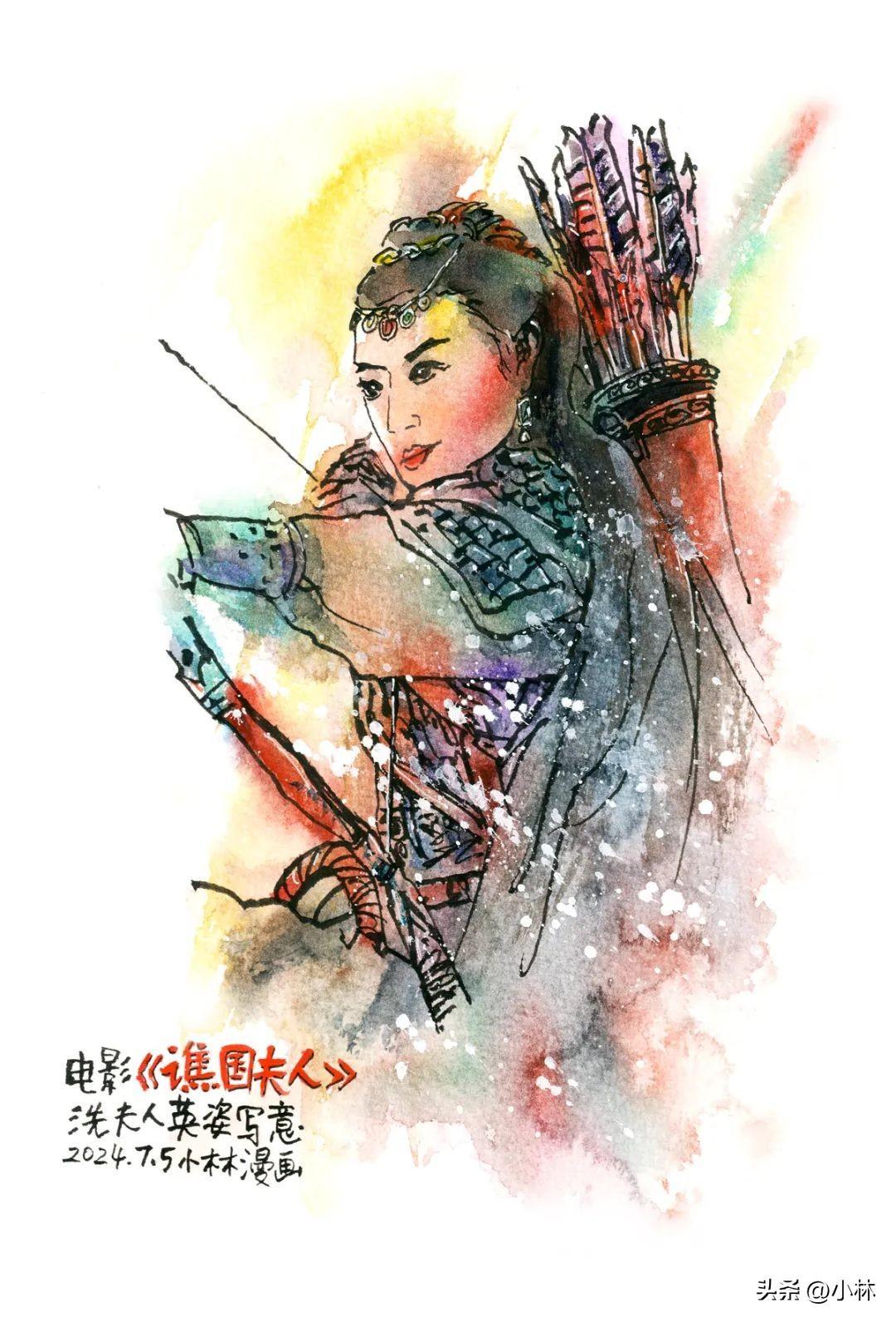今天除了漫畫,小林還畫了下面這張水彩,是電影《譙國夫人》的劇照: