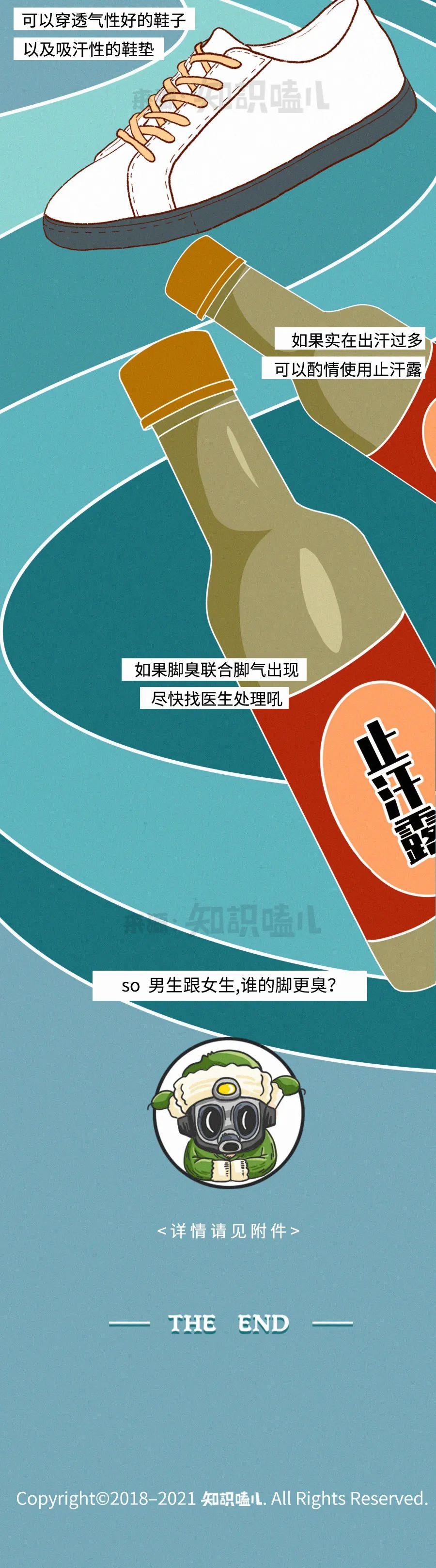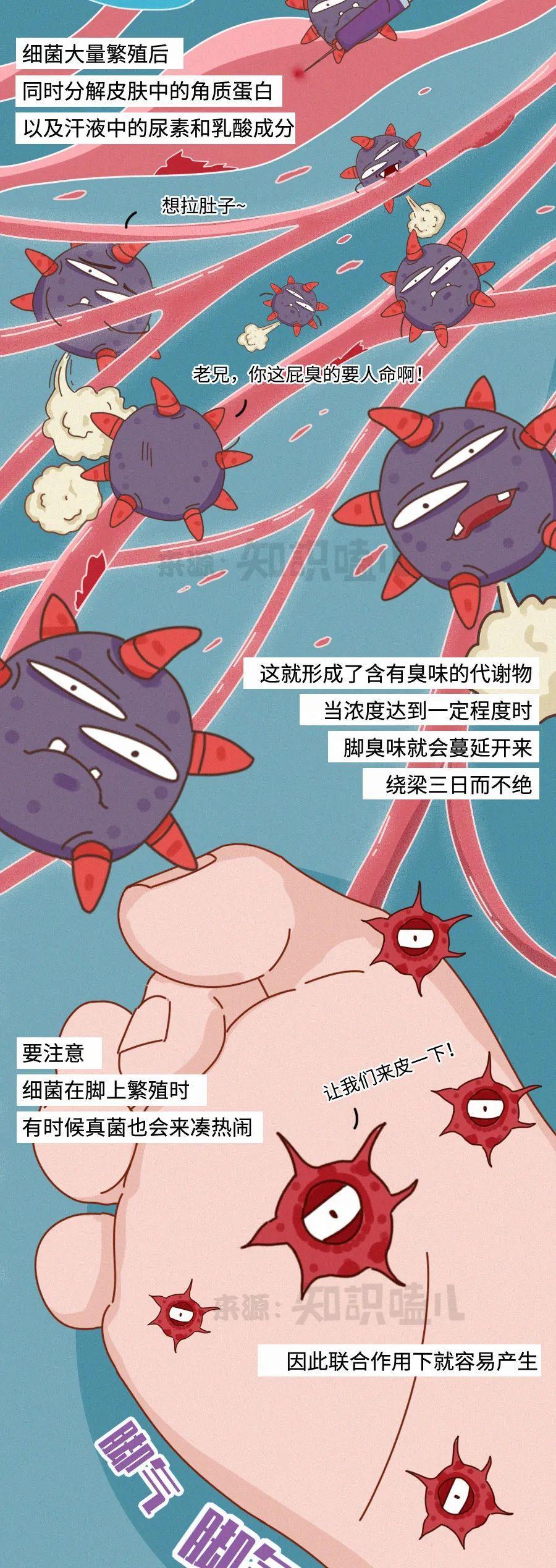 最近的一項研究表明,女性比男性的腳要更臭,一般情況下女性比男性腳臭 6 倍。這個實驗是對比穿皮鞋和襪子的男性和穿皮靴長筒襪的妹子,在相同時間下足部細菌的繁殖率,在上午和下午男性的足部細菌繁殖率速爲 400%,而女性足部的細菌繁殖速率爲 2300%,由此可見女性的足部細菌增速是男性足部將近 6 倍。而足部的細菌增殖速率和腳臭有着密切的聯繫,讓腳發臭的最大原因是死皮角質以及悶熱的足部環境,這兩者會讓足部的細菌大量滋生,讓腳變臭。人類的腳心部分有很多的汗腺,本身就容易排出大量汗水,因此從滋生速率來講,女性的腳要比男性的腳臭將近 6 倍。
