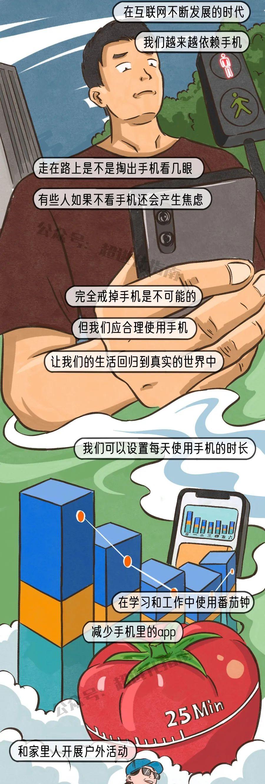 當你沉浸於短視頻和遊戲世界並感到精神乏累時,不如按下暫停鍵,或把手機上的短視頻app和遊戲卸載掉,多出門運動接觸大自然,合理規劃好自己的作息時間,當你減少對手機的依賴而開始關注自身與外界時,你會發現像是打開了一個新世界的大門,心靈上得到前所未有的放鬆和滿足。