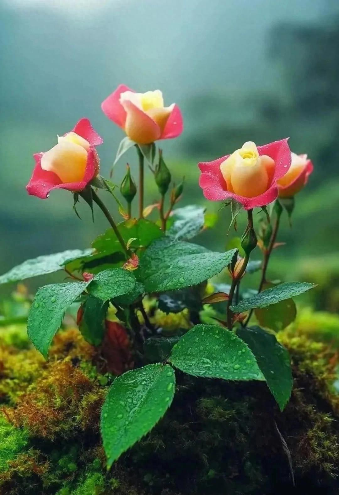 深山玫瑰綻芳華,默默盛開映雲霞。