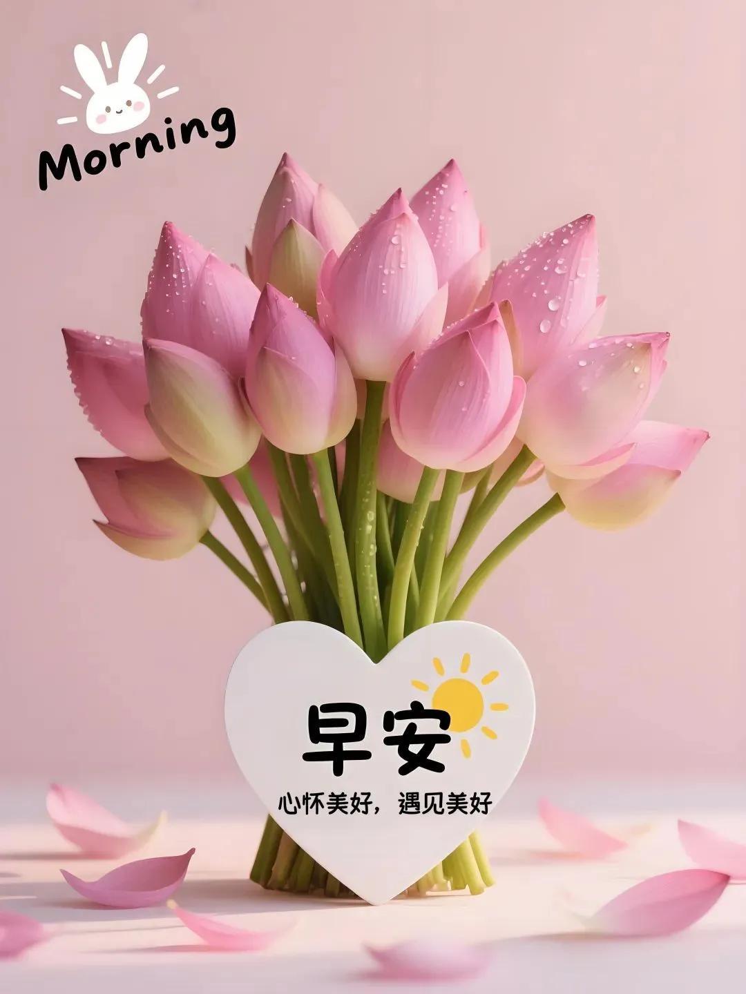 清晨的第一聲問候,滿載我的真摯心意,願這份祝福化作倖運符