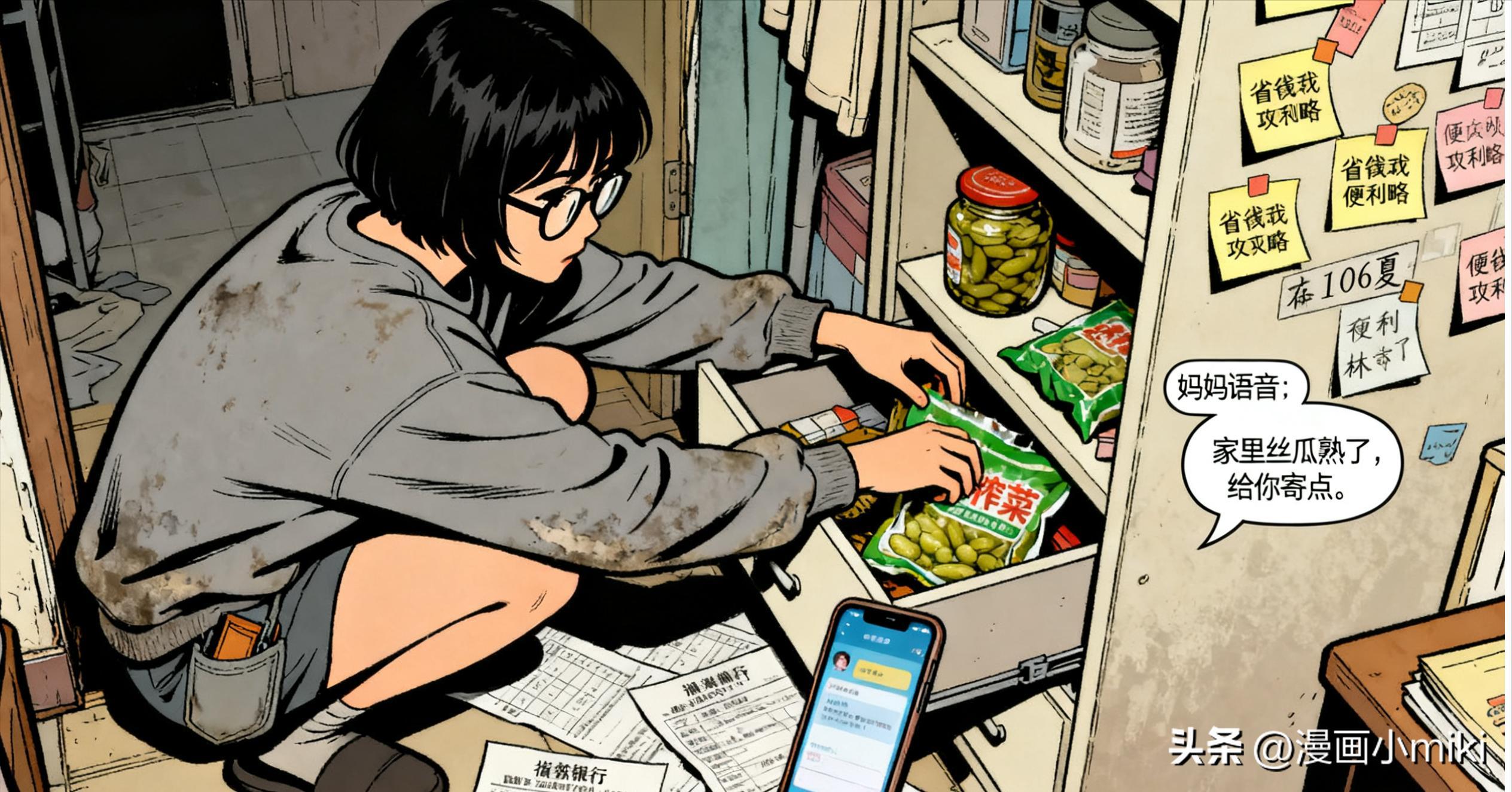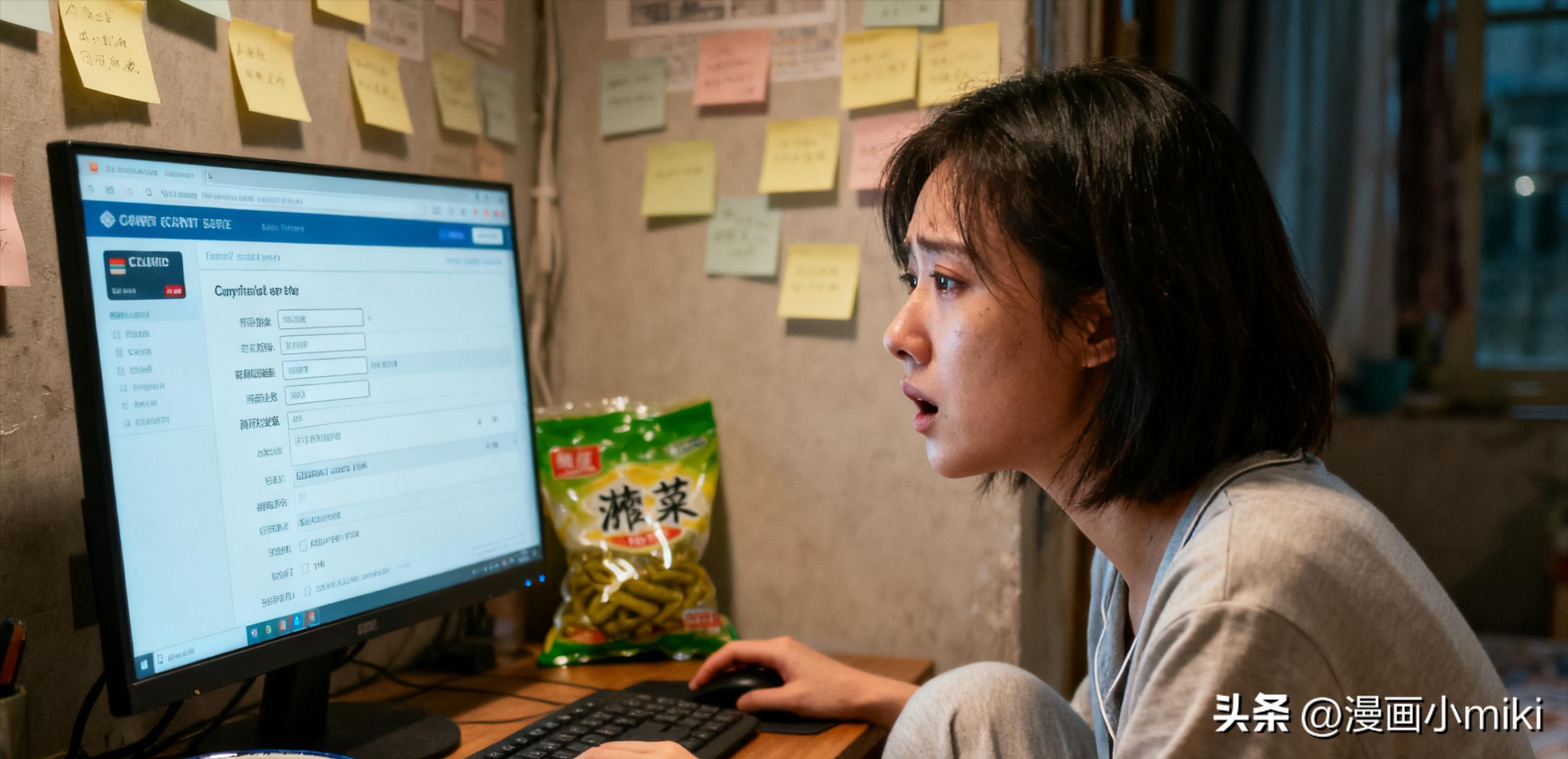 窗外的爭吵聲順着紗窗縫鑽進來,是隔壁夫妻又在爲錢拌嘴。“房貸差三千,孩子奶粉錢還沒着落”,男人的聲音帶着哭腔。林夏摸出抽屜最深處的半袋榨菜,撕開口倒進搪瓷碗,剛衝上開水,手機 “叮咚” 響了。