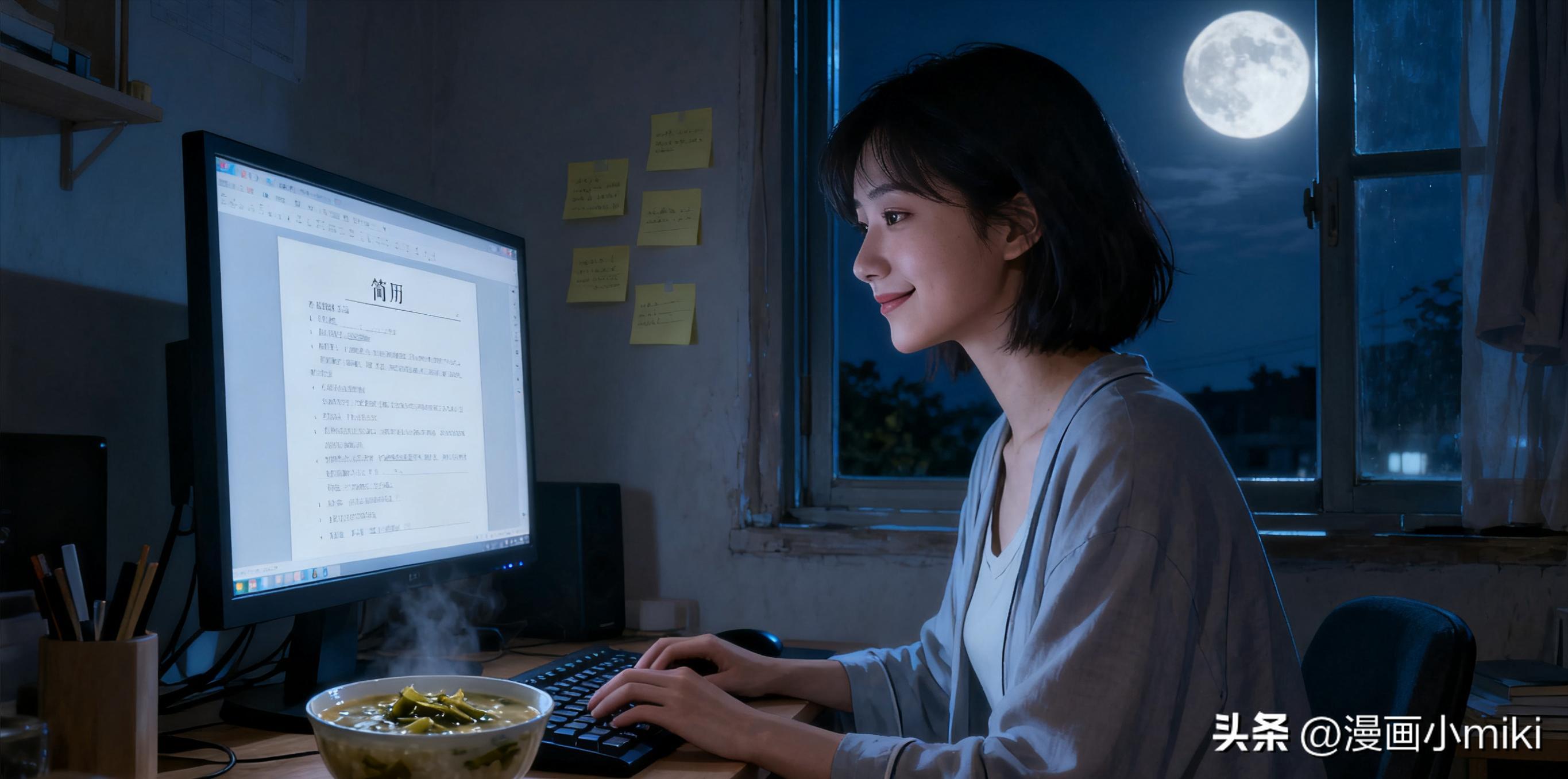 這時電腦突然彈出新郵件提醒,林夏的心猛地一跳。點開卻是信用卡賬單,最低還款額 1280 元。她深吸口氣,重新打開簡歷文檔,在 “技能欄” 添上一行:“熟練使用 AI 創作輔助工具”。