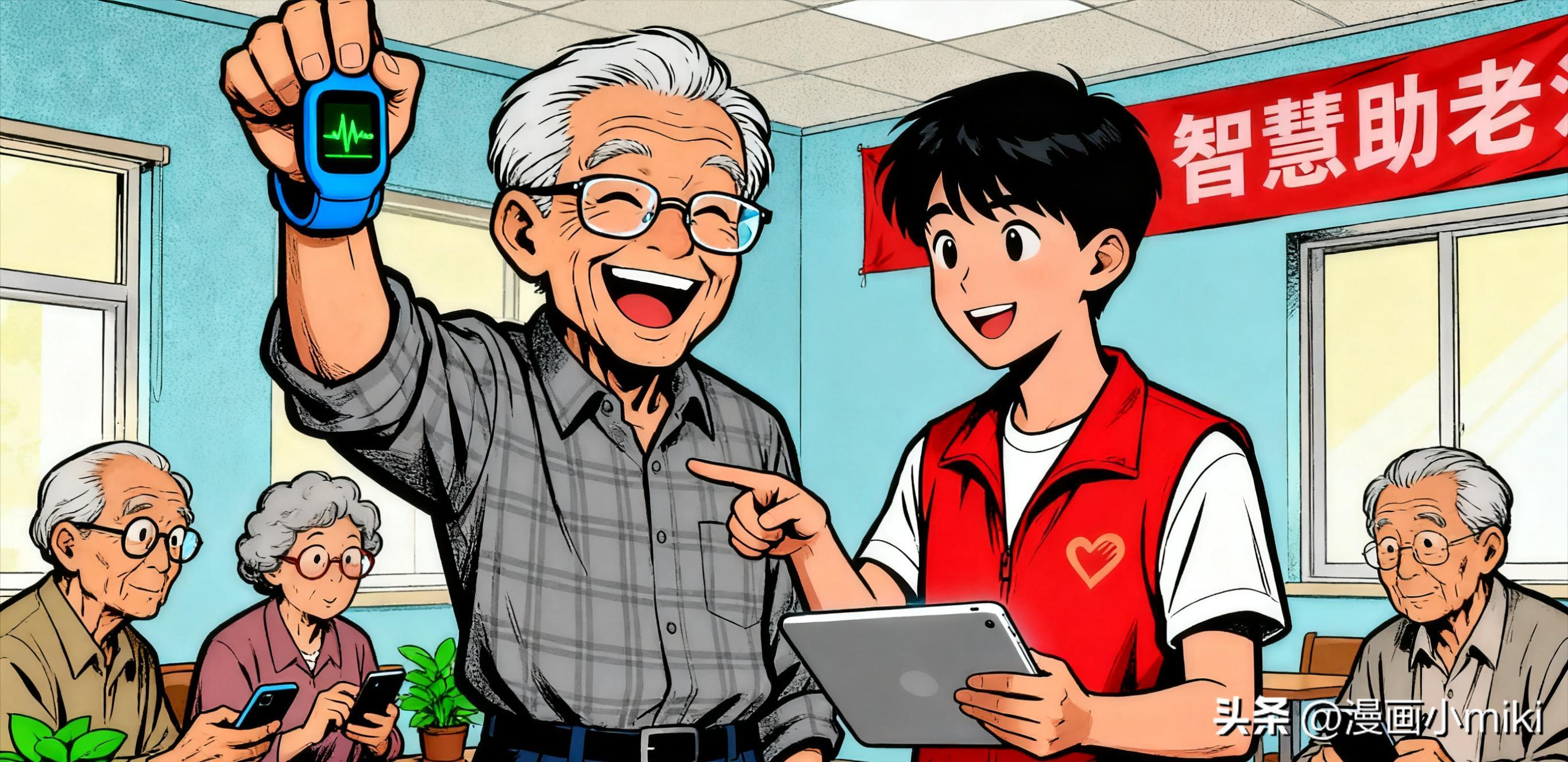 改變是從社區那堂智能課開始的。那天小林陪爺爺去領免費雞蛋,看見廣場上搭着藍色帳篷,志願者舉着平板喊:“叔叔阿姨,教大家用手機拍視頻啦!” 爺爺本來不想去,可聽見 “能拍菜園”,腳步突然停了。志願者耐心教爺爺用語音發朋友圈,還幫他把菜園裏的茄子、辣椒拍成了小視頻。臨走時,爺爺還領了個深藍色的心率手環 —— 社區工作人員說,這是 “銀髮經濟” 政策補貼的,自己只花幾十塊。爺爺攥着手環,像揣了寶貝,路上一直問小林:“這個真能把血壓發給你?”