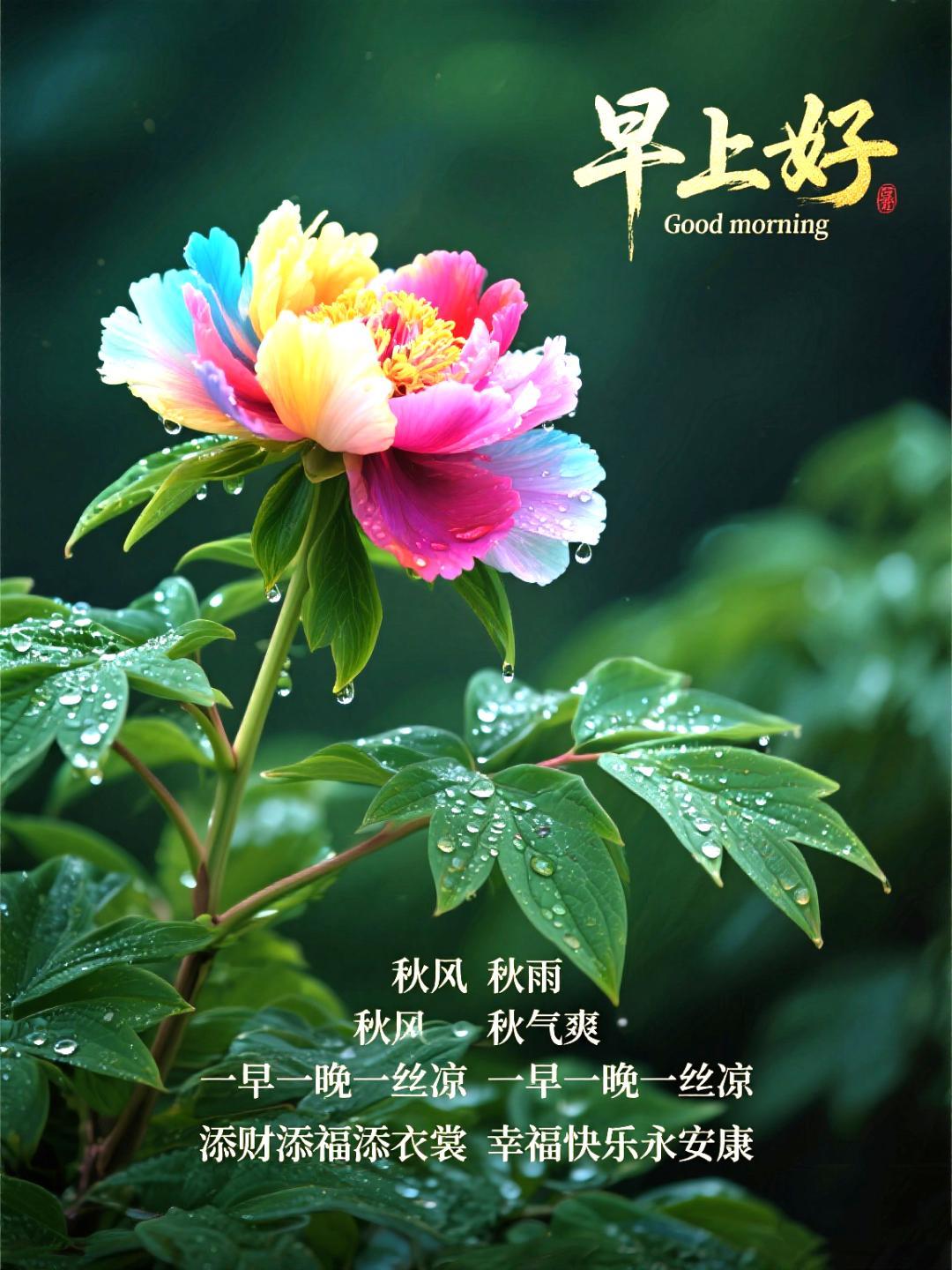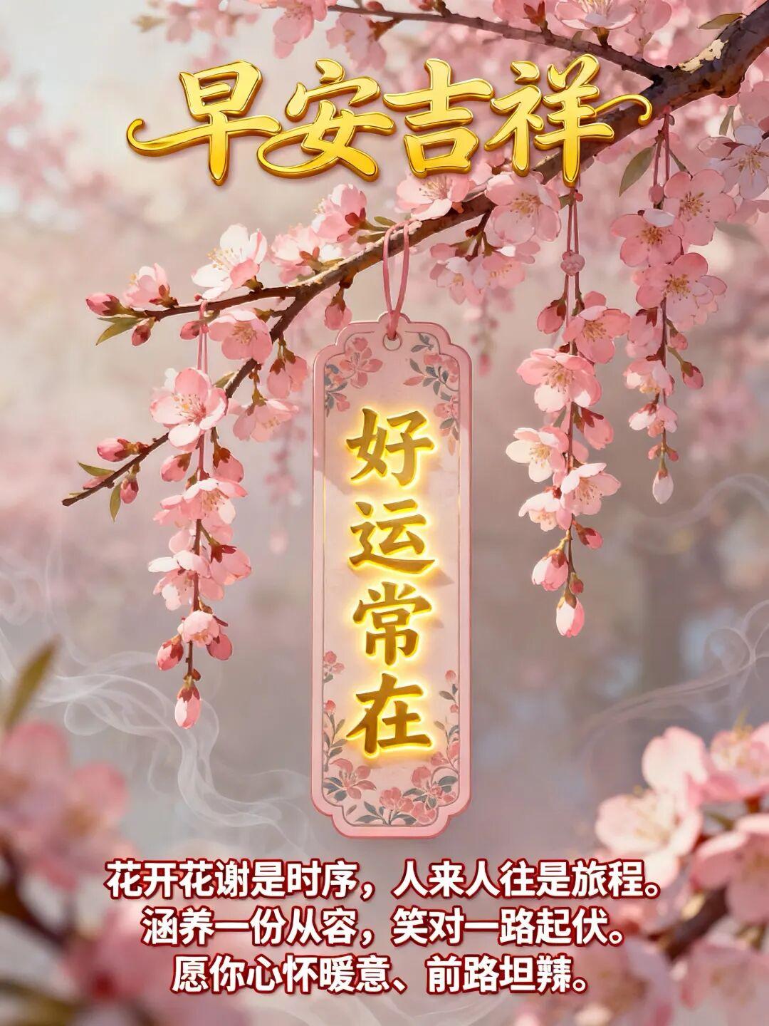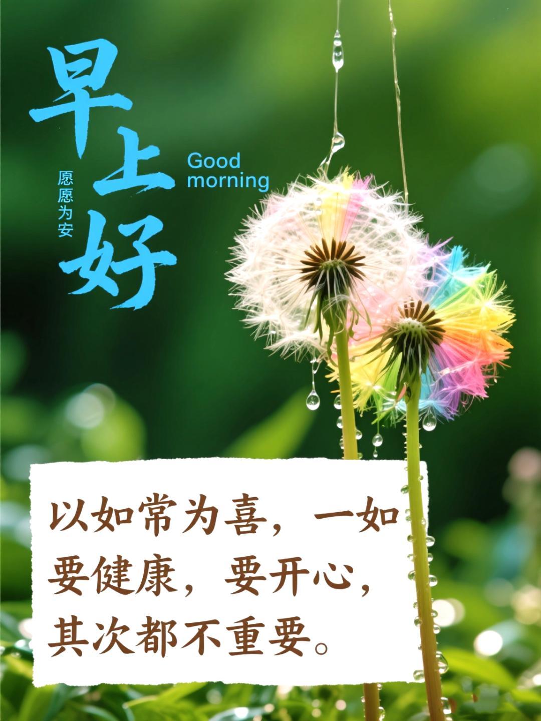 清晨微風送舒服,暖心祝福帶吉祥,願如意、安康常跟着你。
