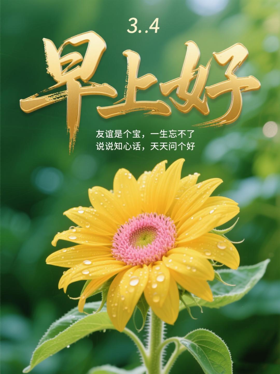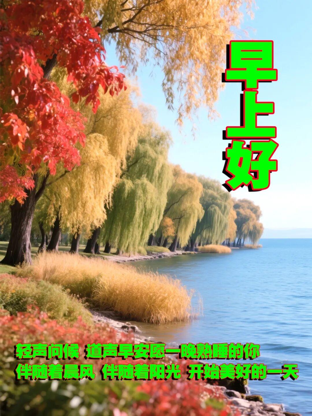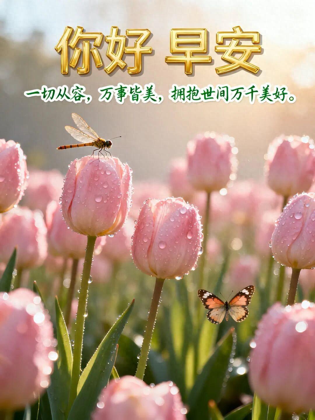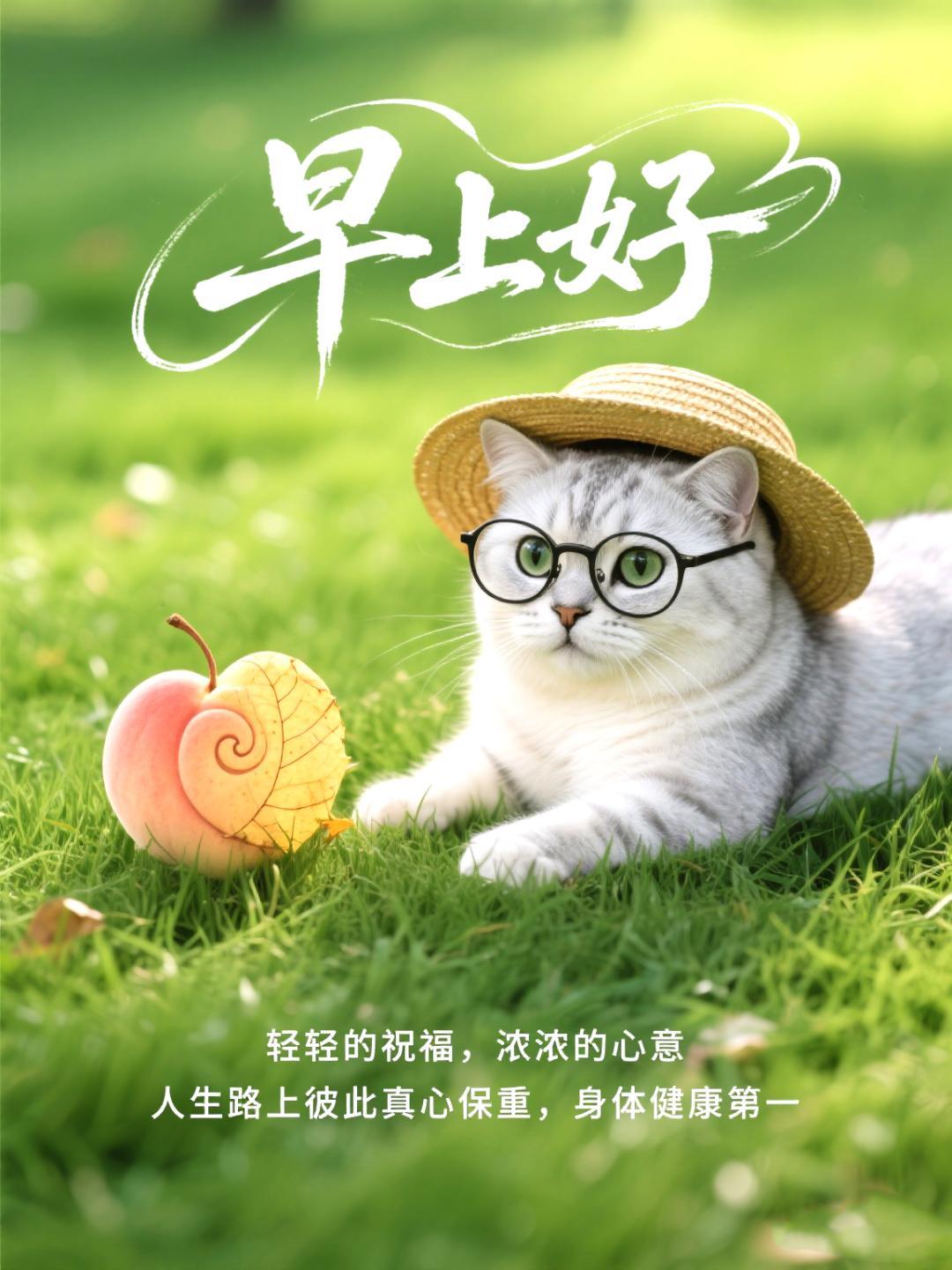 清晨微風送舒服,暖心祝福帶吉祥,願如意、安康常跟着你。