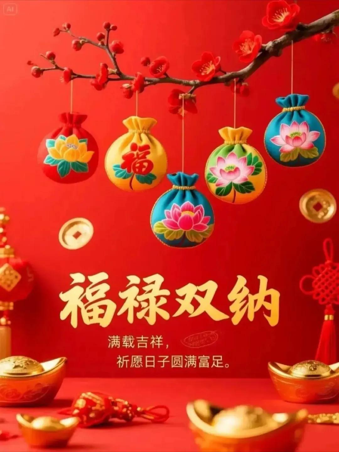 祝福正當時,不言晚和早,只把喜來報,報得福臨門