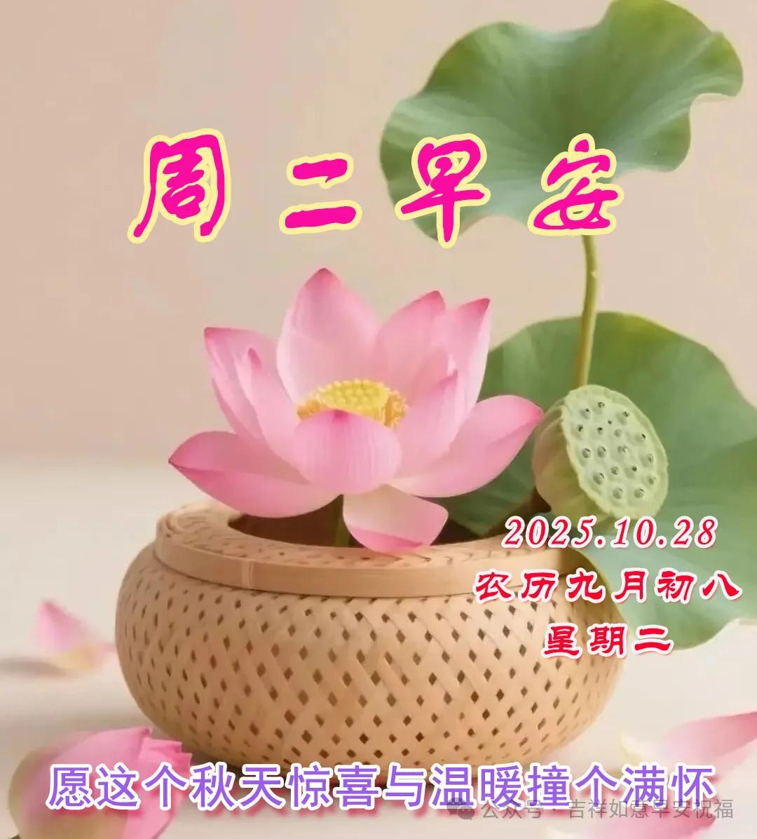 美好清晨,秋意盎然,帶着吉祥,帶着花香,送上真摯祝願
