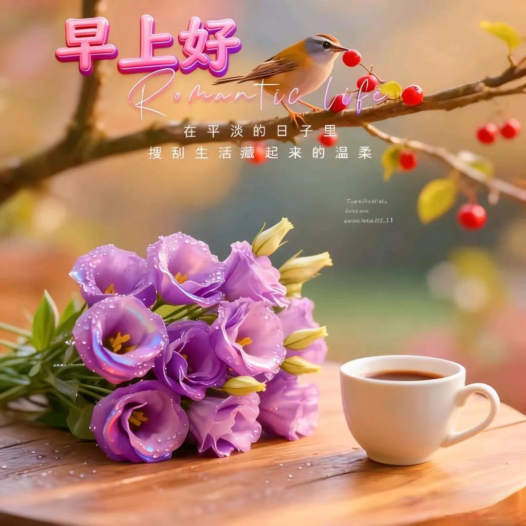 美好清晨,秋意盎然,帶着吉祥,帶着花香,送上真摯祝願