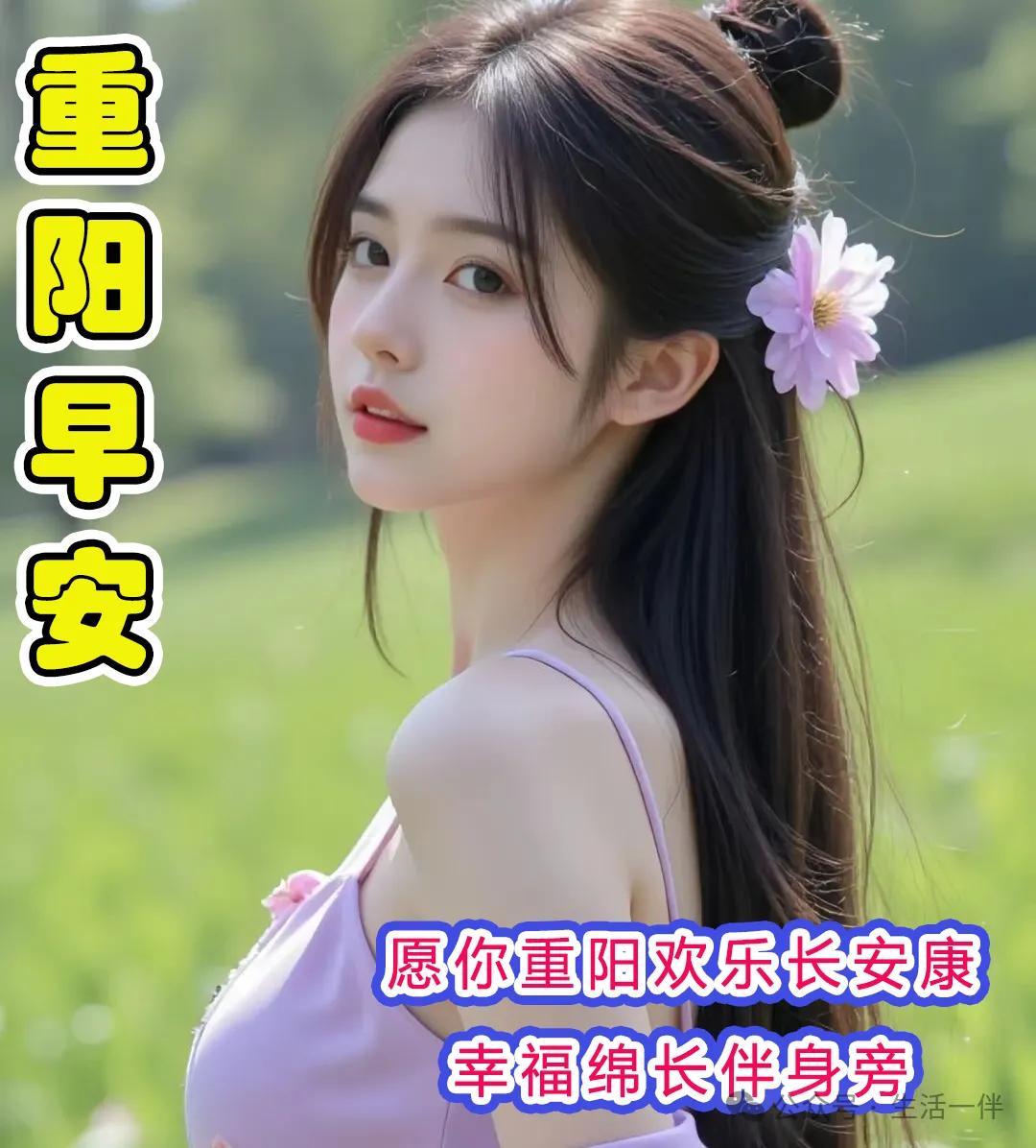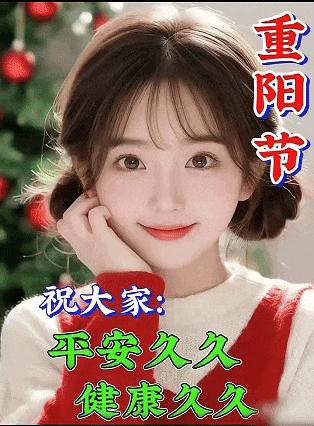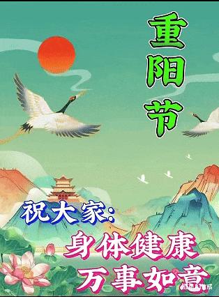 七彩祥雲繞吉門 八面來風送瑞音,九九歸真情意深,重陽安康福滿門