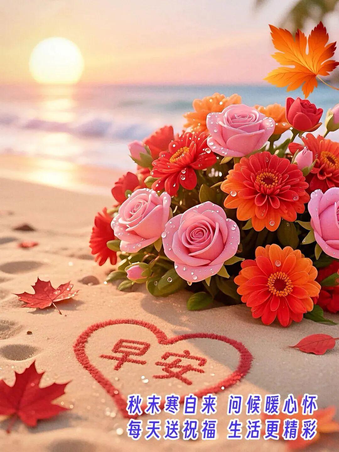 美好清晨,秋意盎然,帶着吉祥,帶着花香,送上真摯祝願