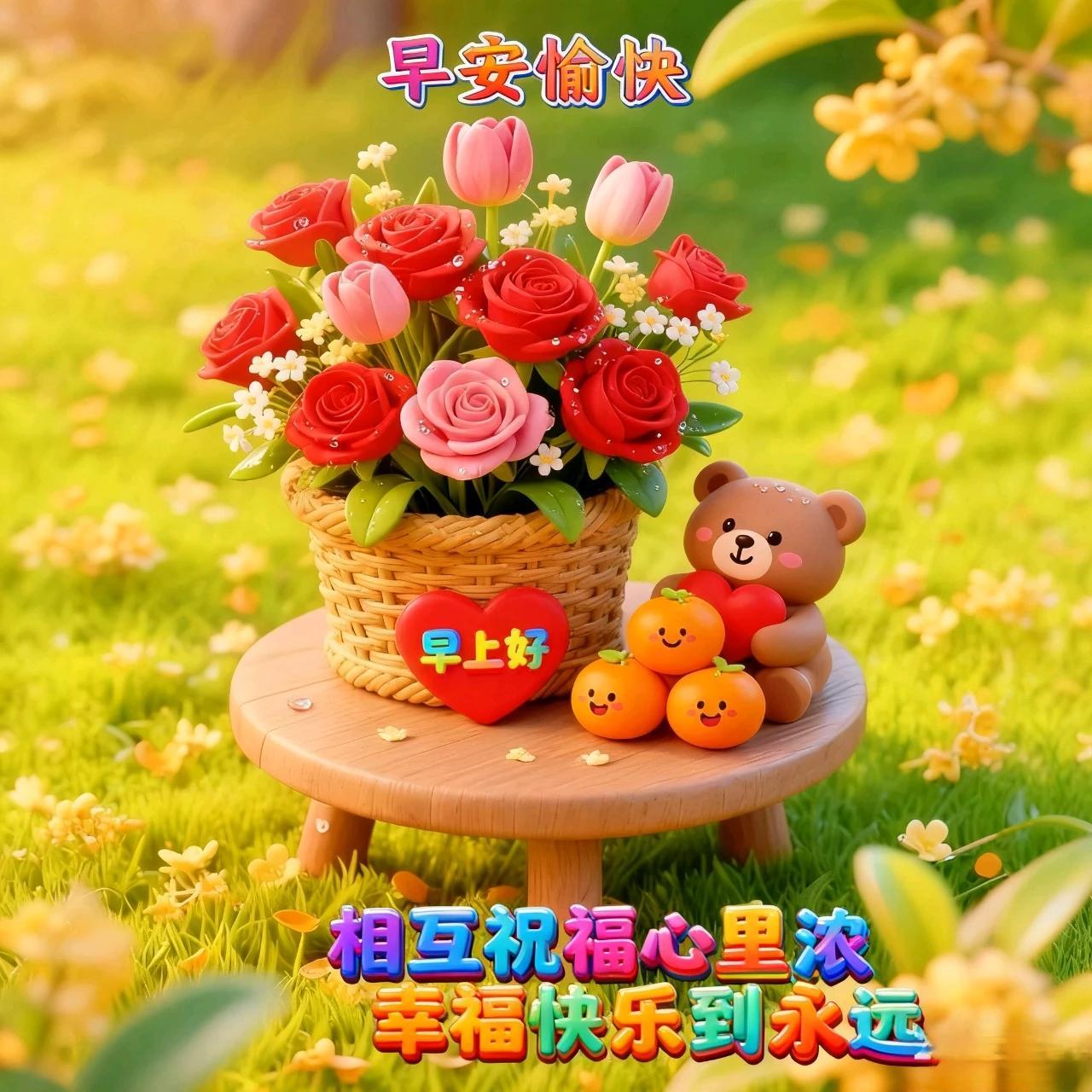 美好清晨,秋意盎然,帶着吉祥,帶着花香,送上真摯祝願