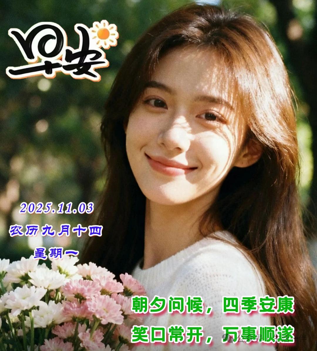 美好清晨,秋意盎然,帶着吉祥,帶着花香,送上真摯祝願