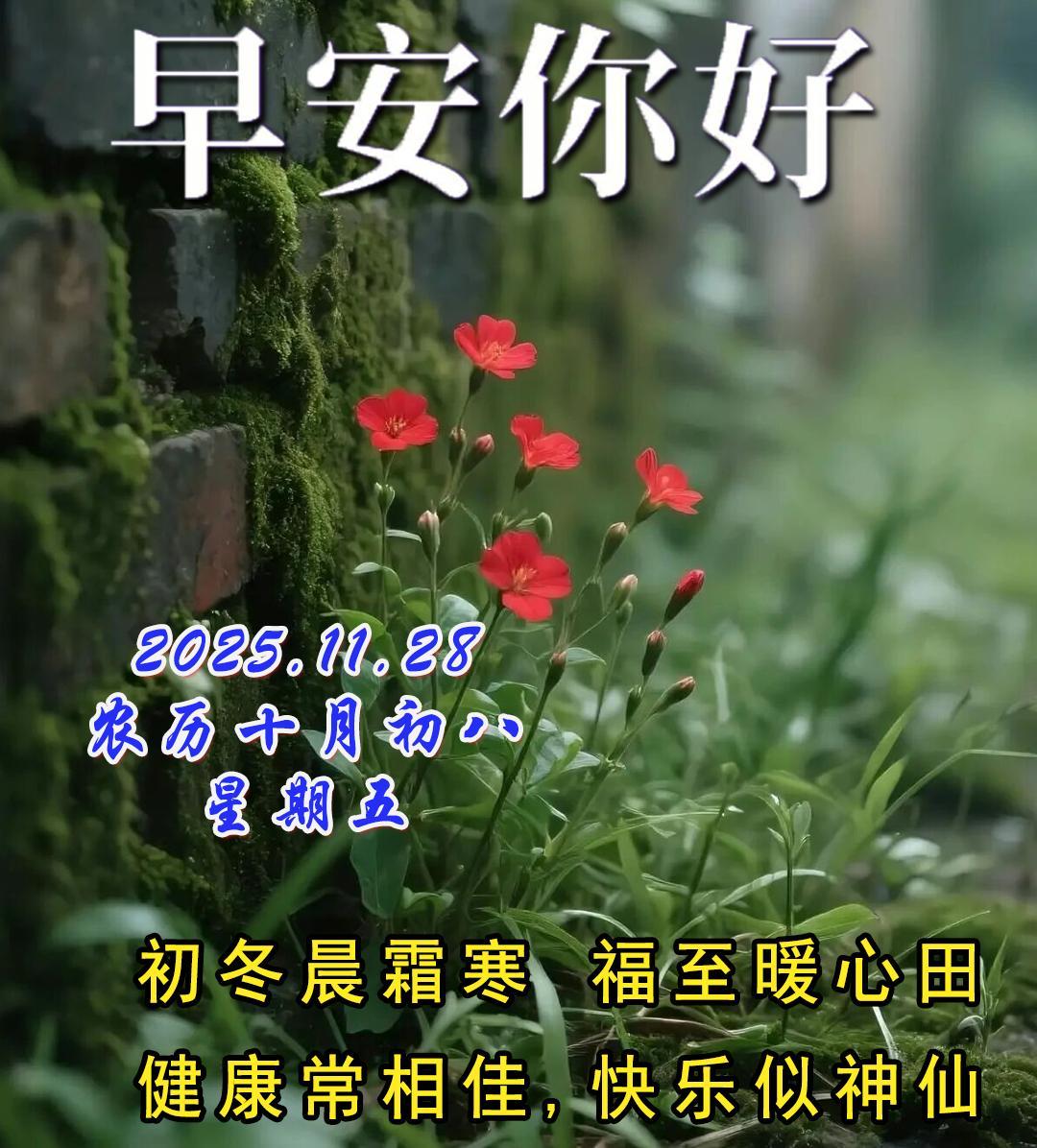 週五早安問候美圖|初冬晨霜寒 福至暖心田健康常相佳,快樂似神仙