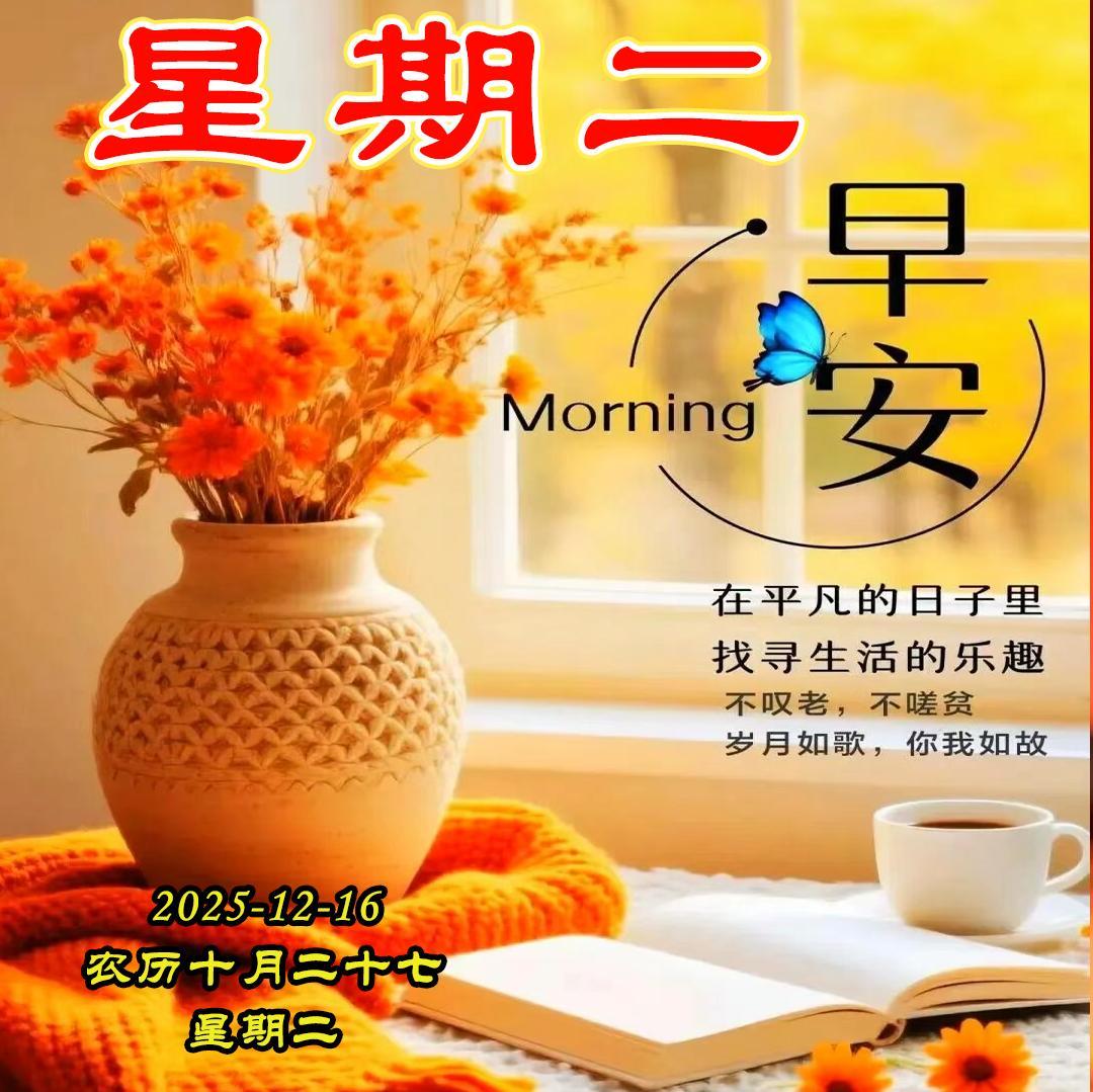 週二早安圖片|秋月寄思,問候不斷;冬雪祈願,平安年年。