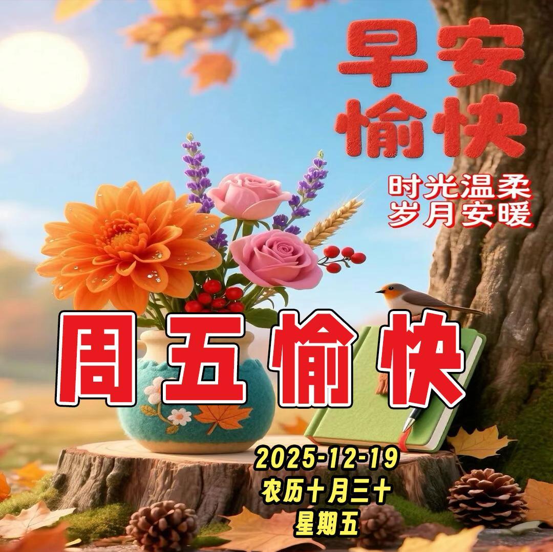 週五早安圖片|切記天冷出門多添衣,保暖防寒別大意