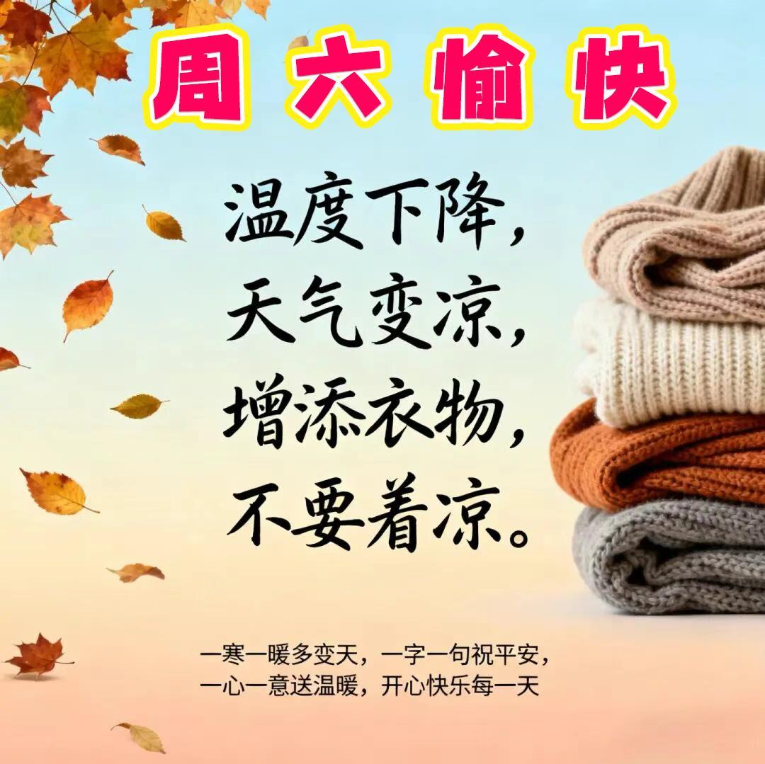 週六早安圖片|預報降溫寒潮到,清晨問候當外套