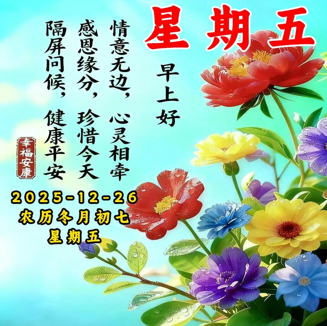週五早安圖片|心情舒暢精神好。吉祥平安身體好