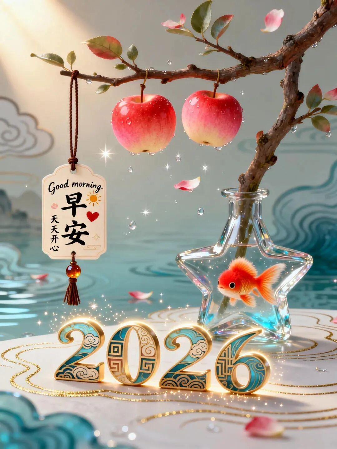 舊年霜雪化春水,新年花開滿路途。願你我晨起有陽光,夜眠有美夢
