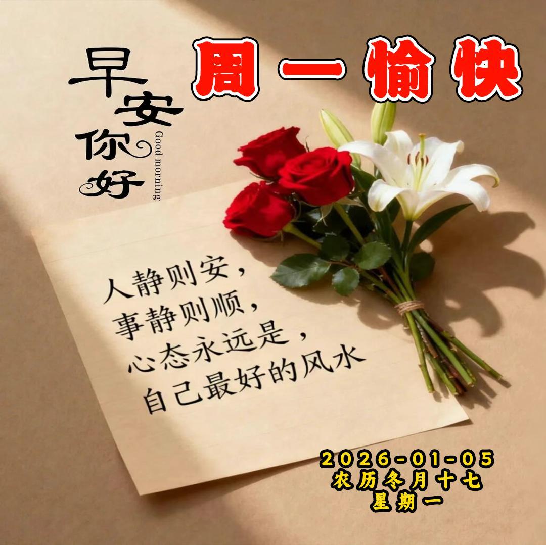 早安,祝您2026年的元旦過後第一天工作順利,事業步步高