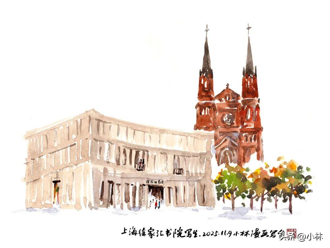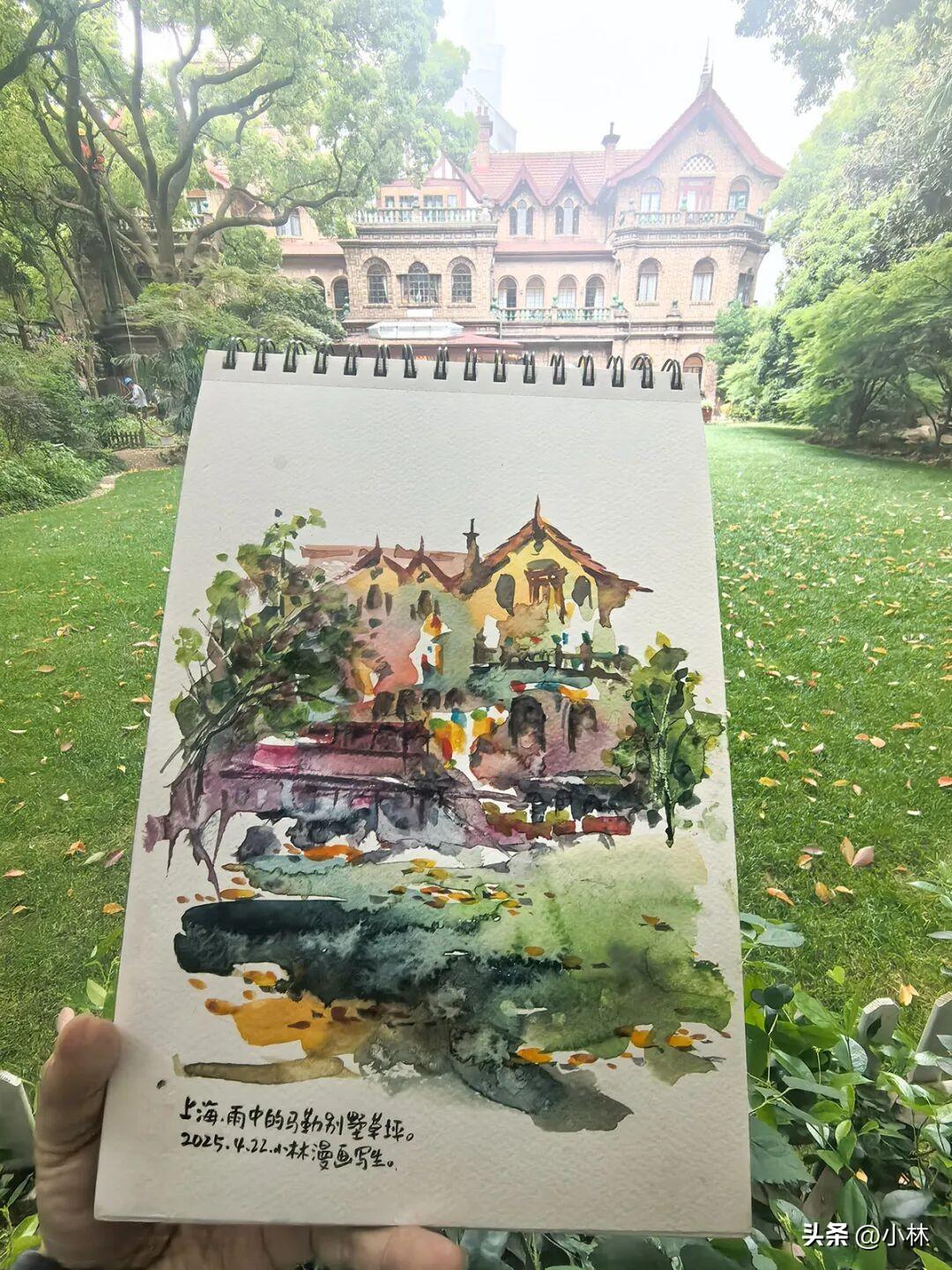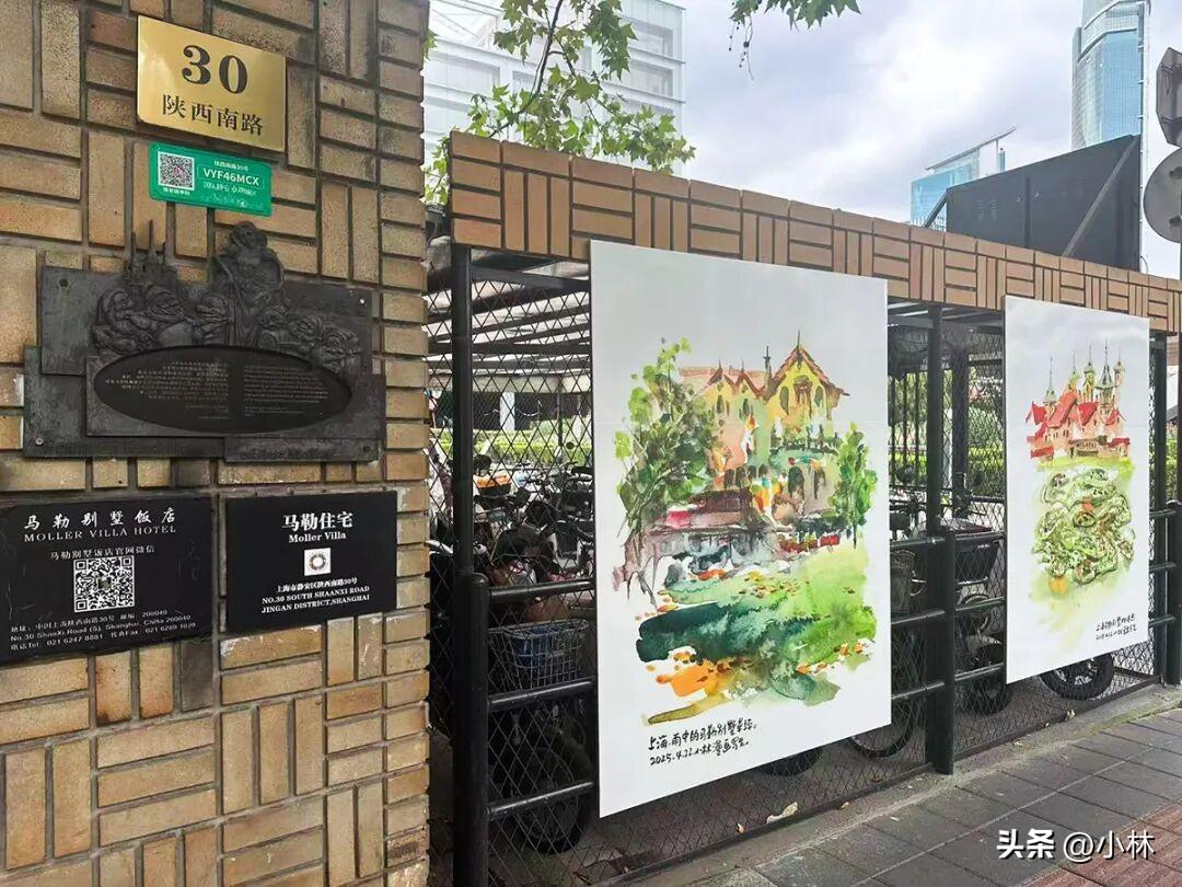 這張寫生畫,現在掛在馬勒別墅的門口,如果大家路過上海陝西南路30號,應該能看到。