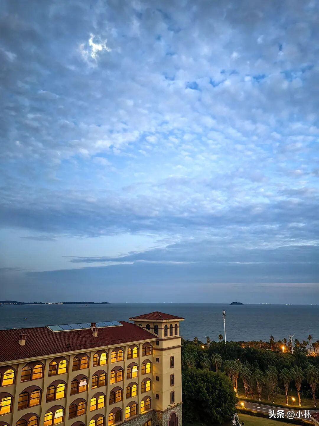 十一月,廈門,海邊的旅館黃昏,月色隱藏在薄雲間,朦朧不清。
