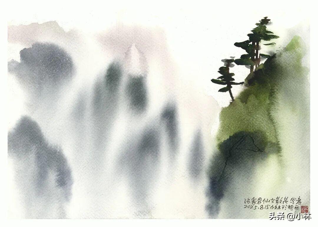 在張家界的寫生畫,我畫一半,雨畫一半。