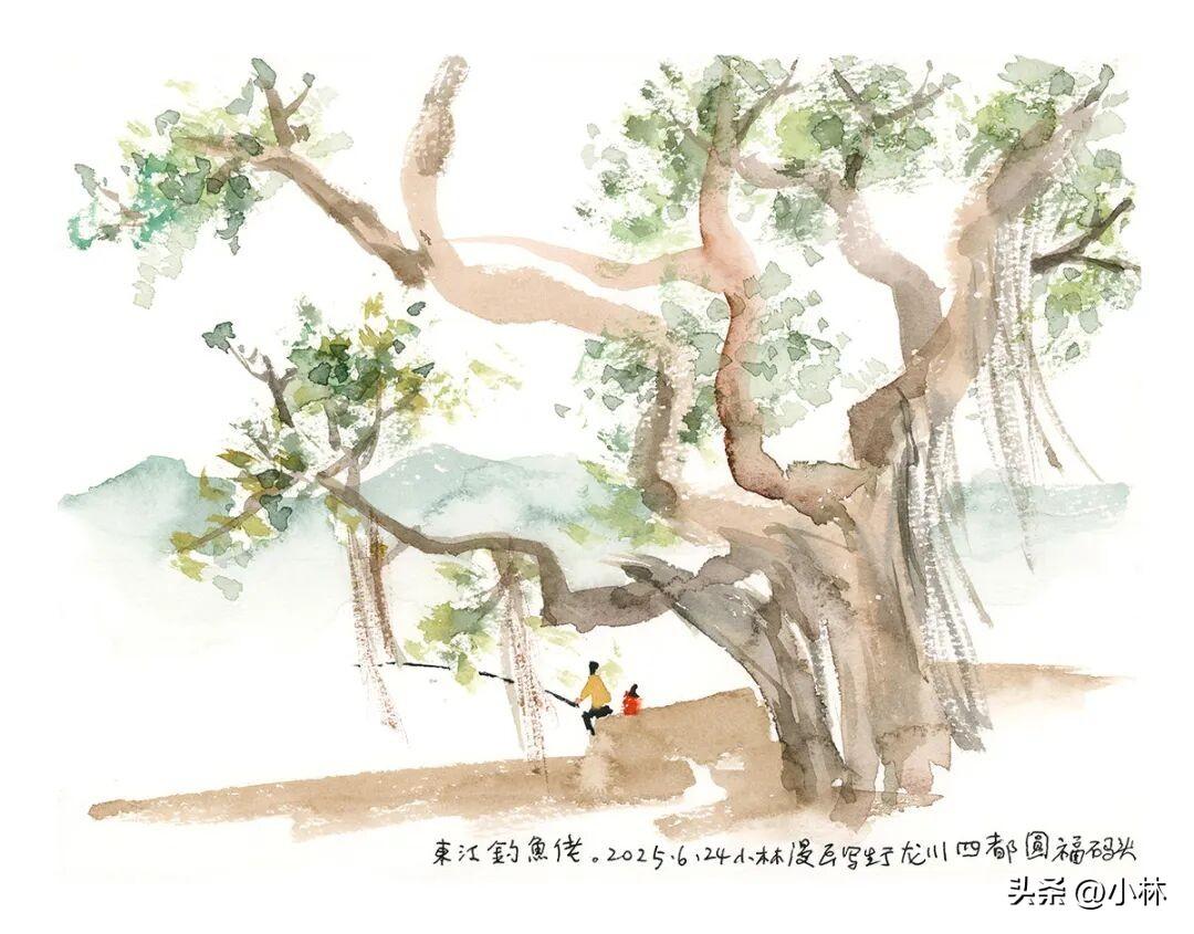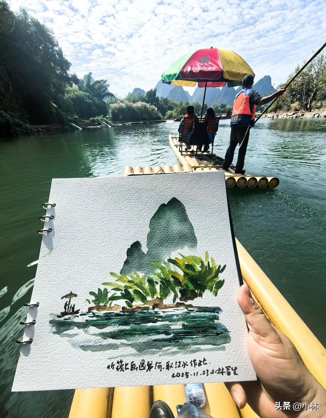 灕江遇龍河,竹筏上畫現場寫生第一人,艄公都大呼活久見。