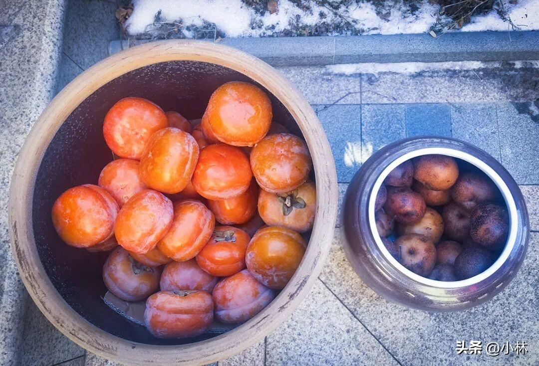 一月長春,院子裏的凍柿子和凍梨,解凍後是一包甜蜜的糖水。