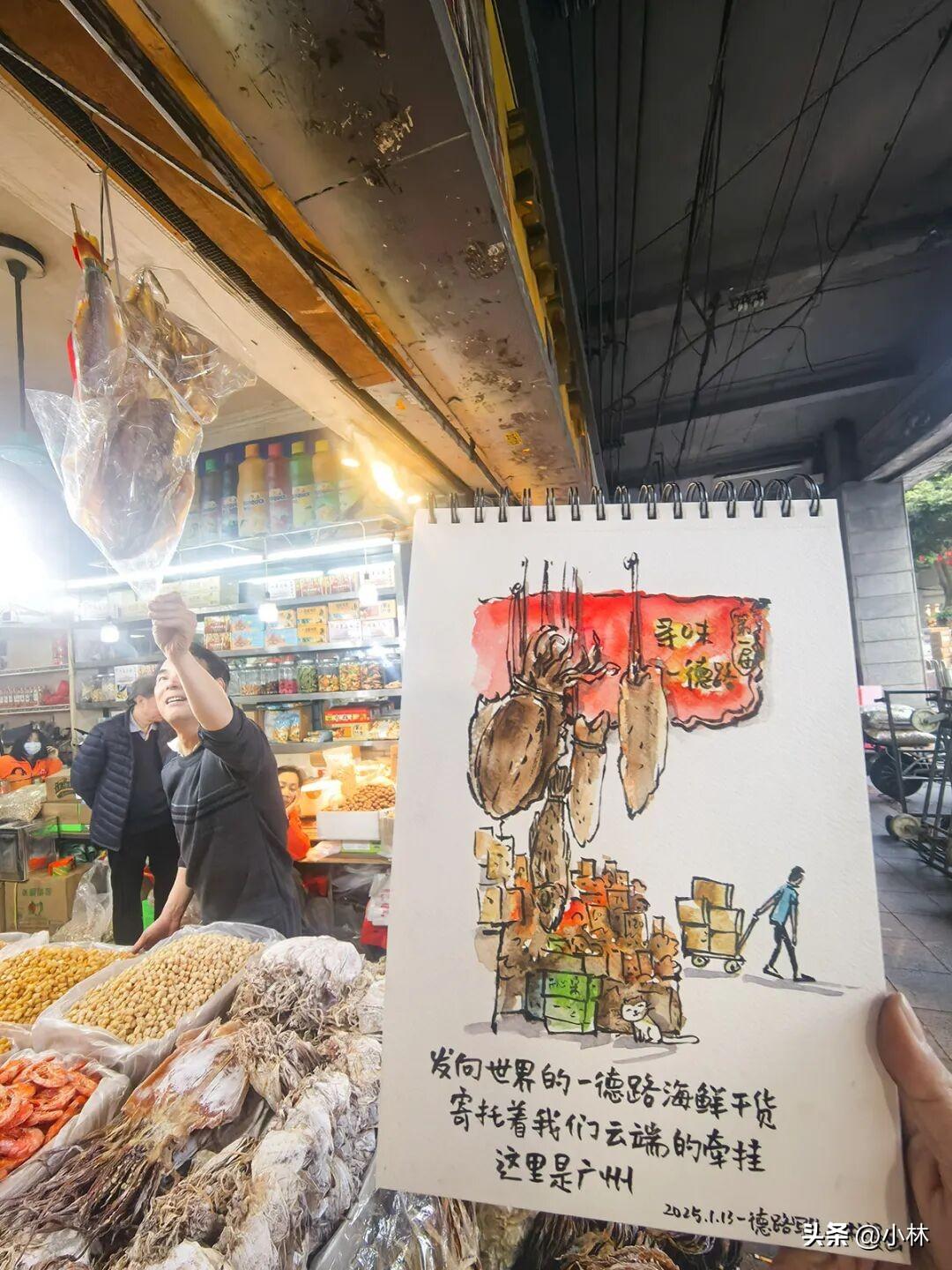 一月廣州越秀,畫一德路,海鮮乾貨文具批發市場一條街,髒亂差裏也有詩意。