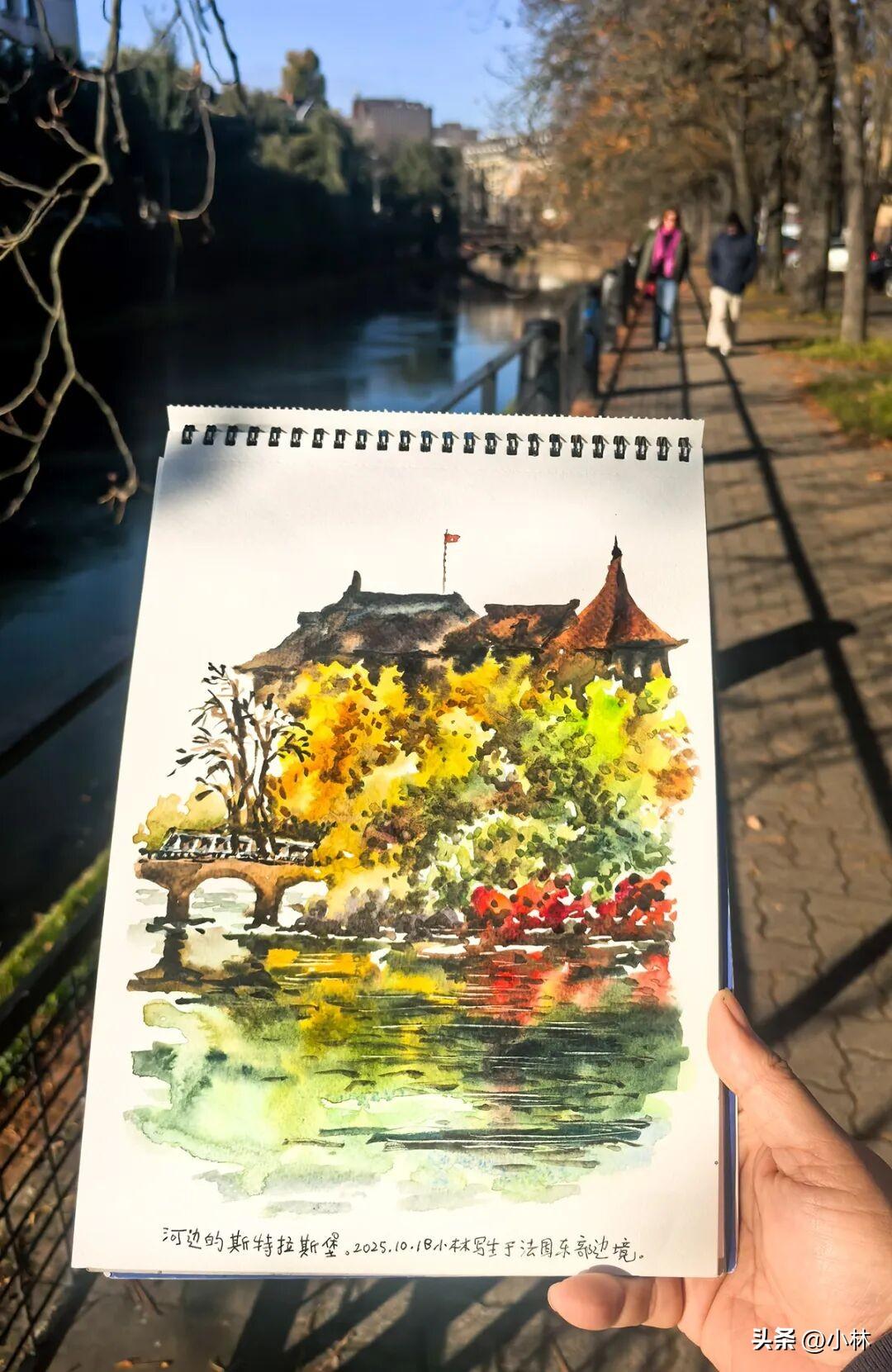 在斯特拉斯堡的河邊,曬着深秋的陽光,慢悠悠地畫着寫生,很美好啊。
