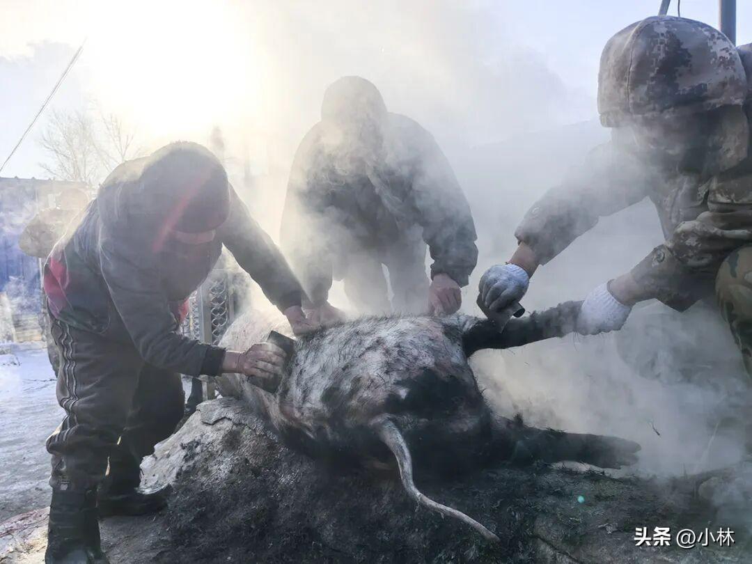 一月遼寧,遼陽鄉下的殺年豬,這趟東北,就是奔着這頭350斤的黑毛大土豬來的。