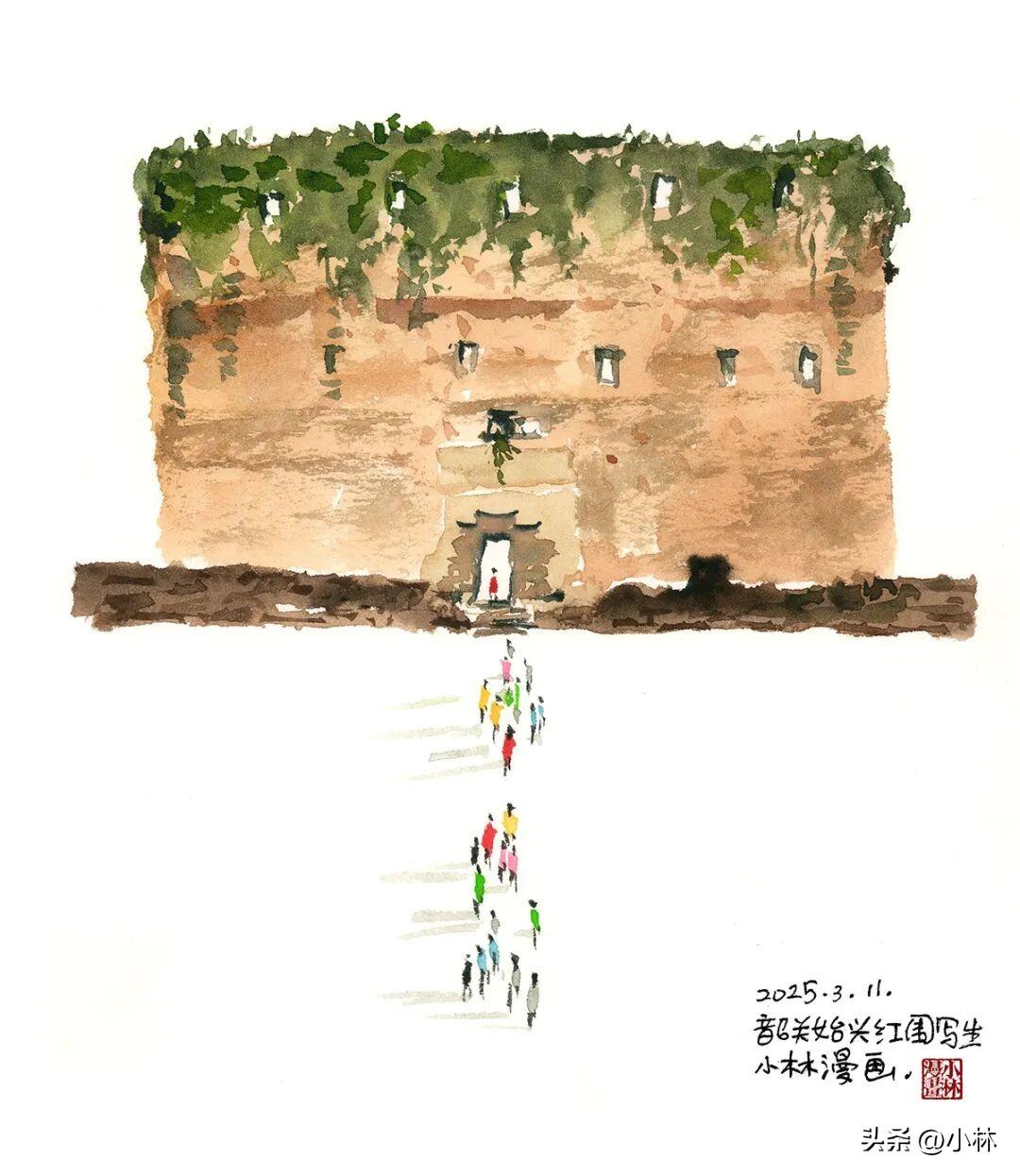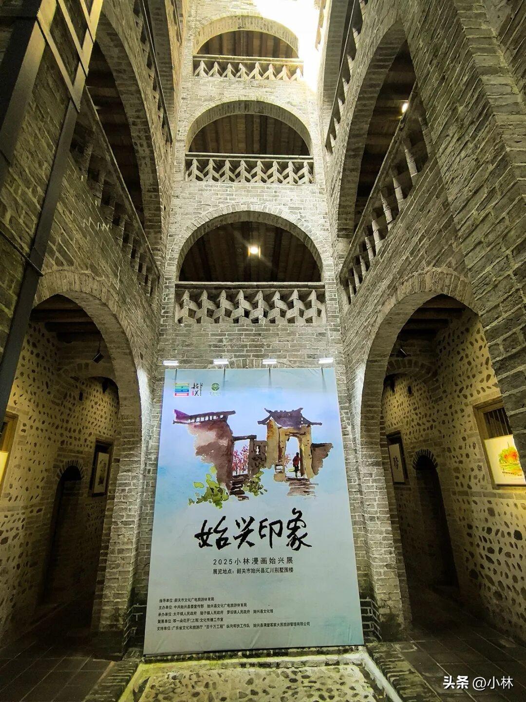 九月,韶關始興,小林畫的客家圍樓,在一座很有氛圍的百年圍樓裏展出。
