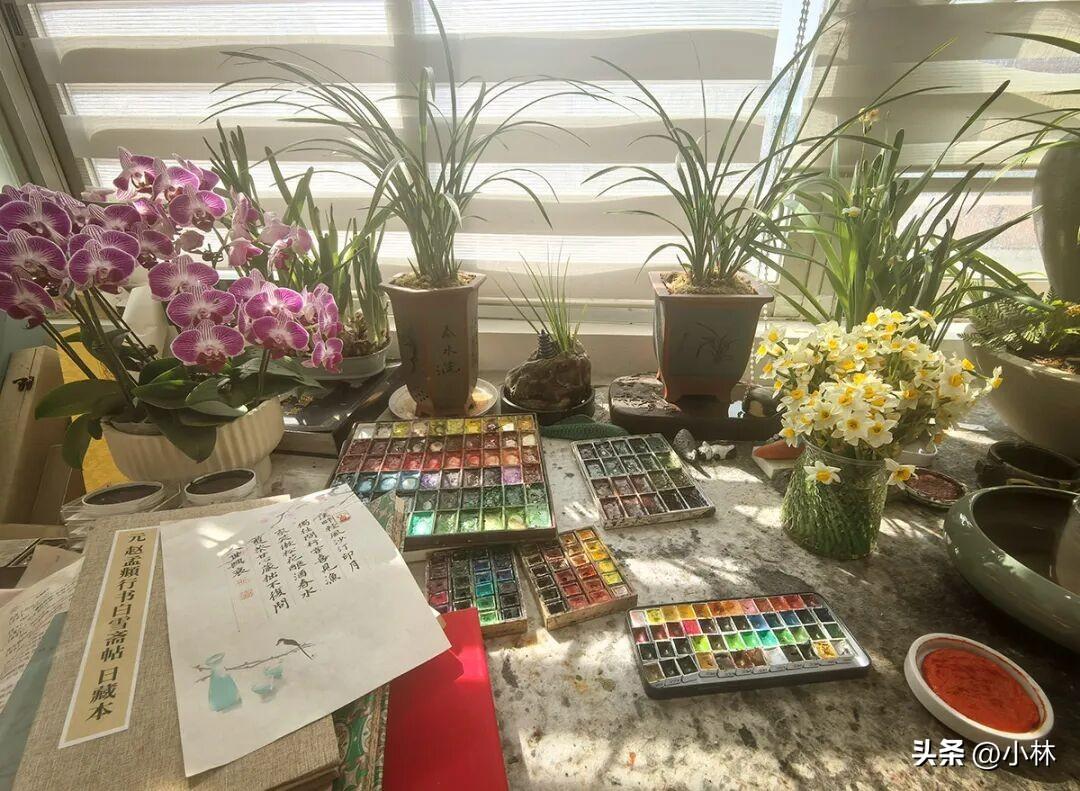 不出門的日子,陽光會灑落在每天畫畫的桌子上,毛氈已經六年未換,墨跡斑斑。