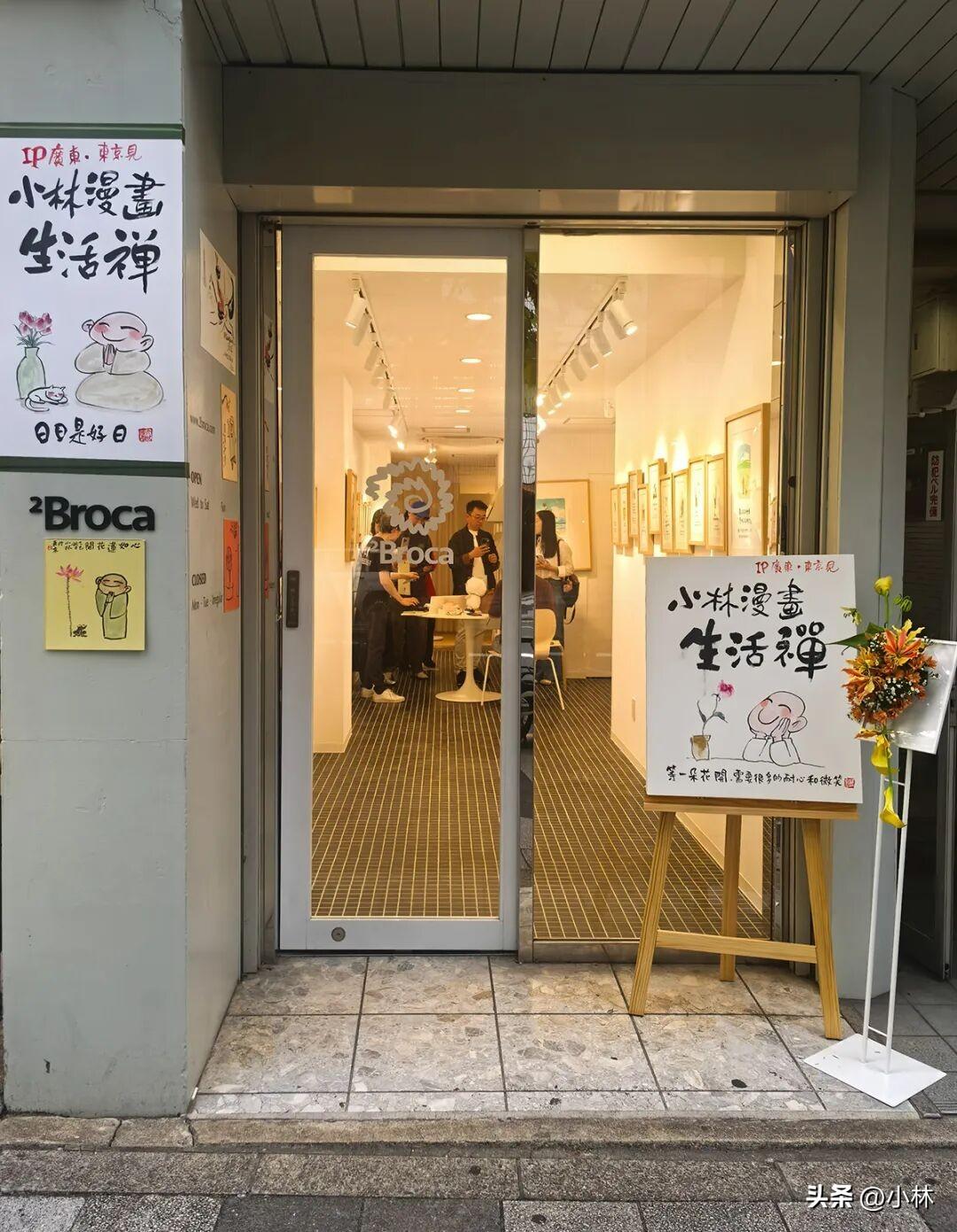 在東京,一家賣小林漫畫衍生品的快閃店開幕,爲了節省成本,門頭的廣告海報,都是小林現場現畫的。