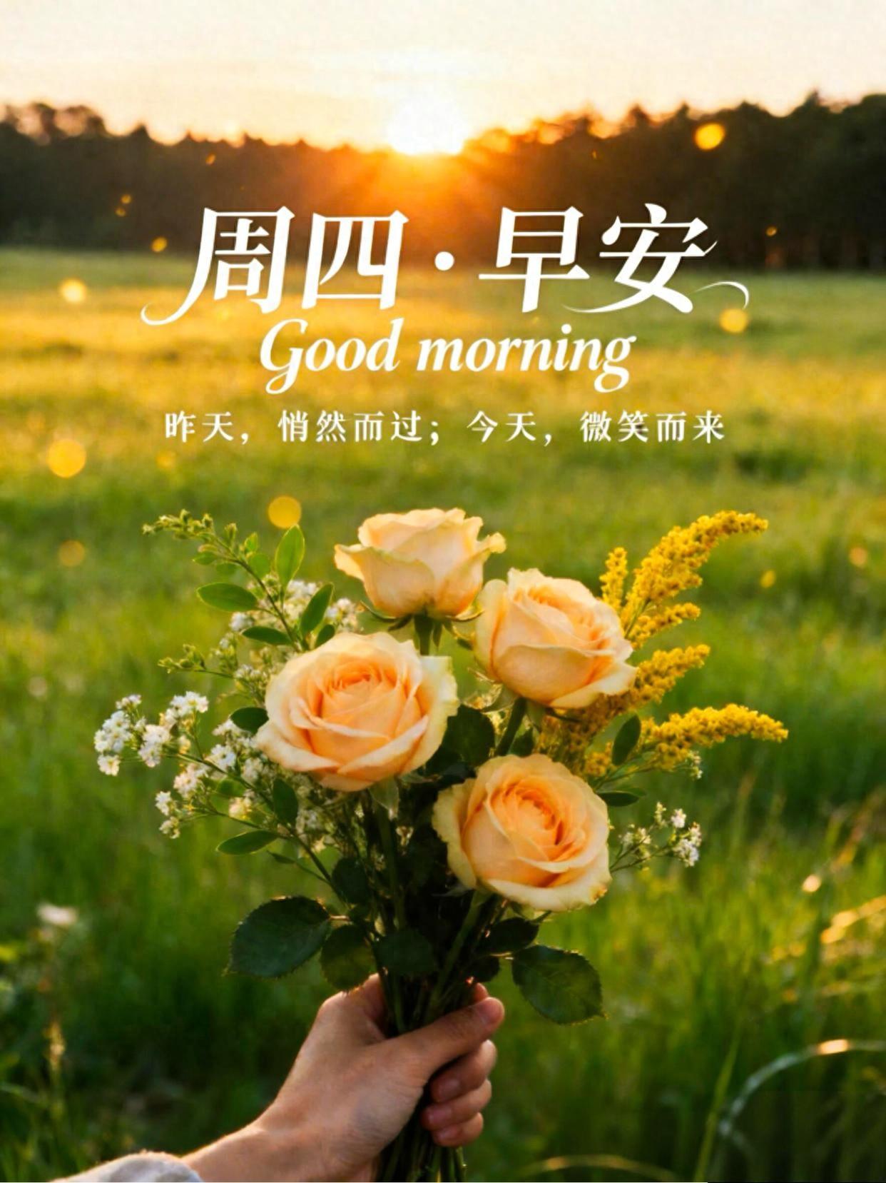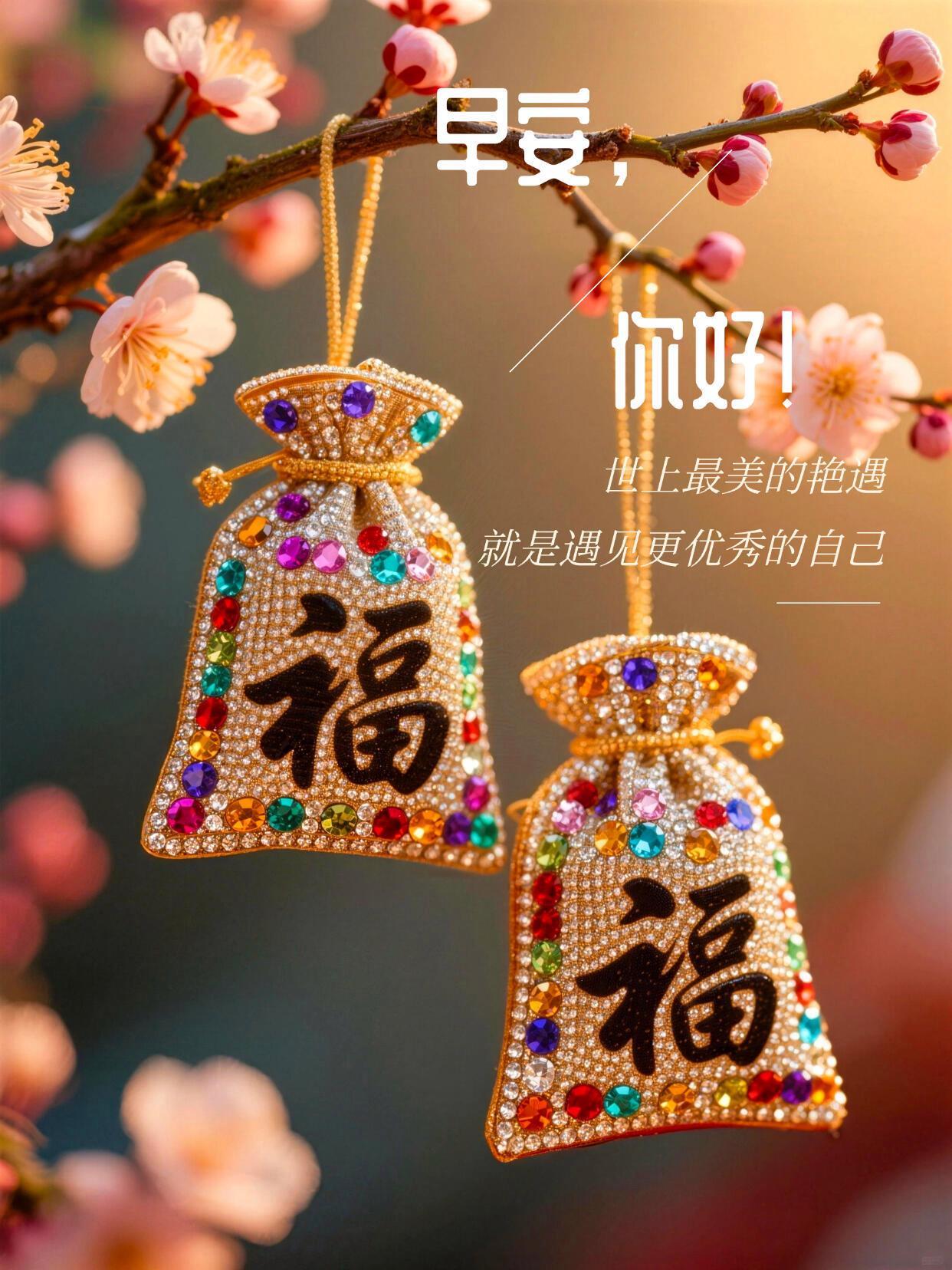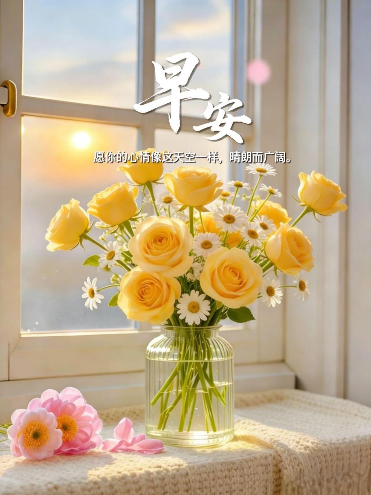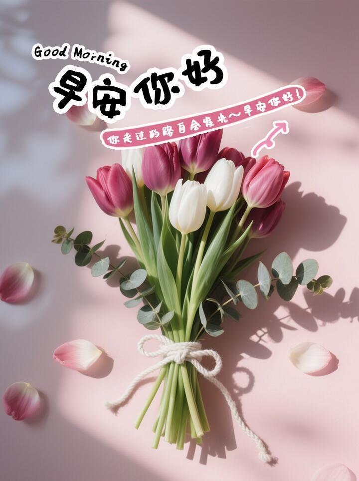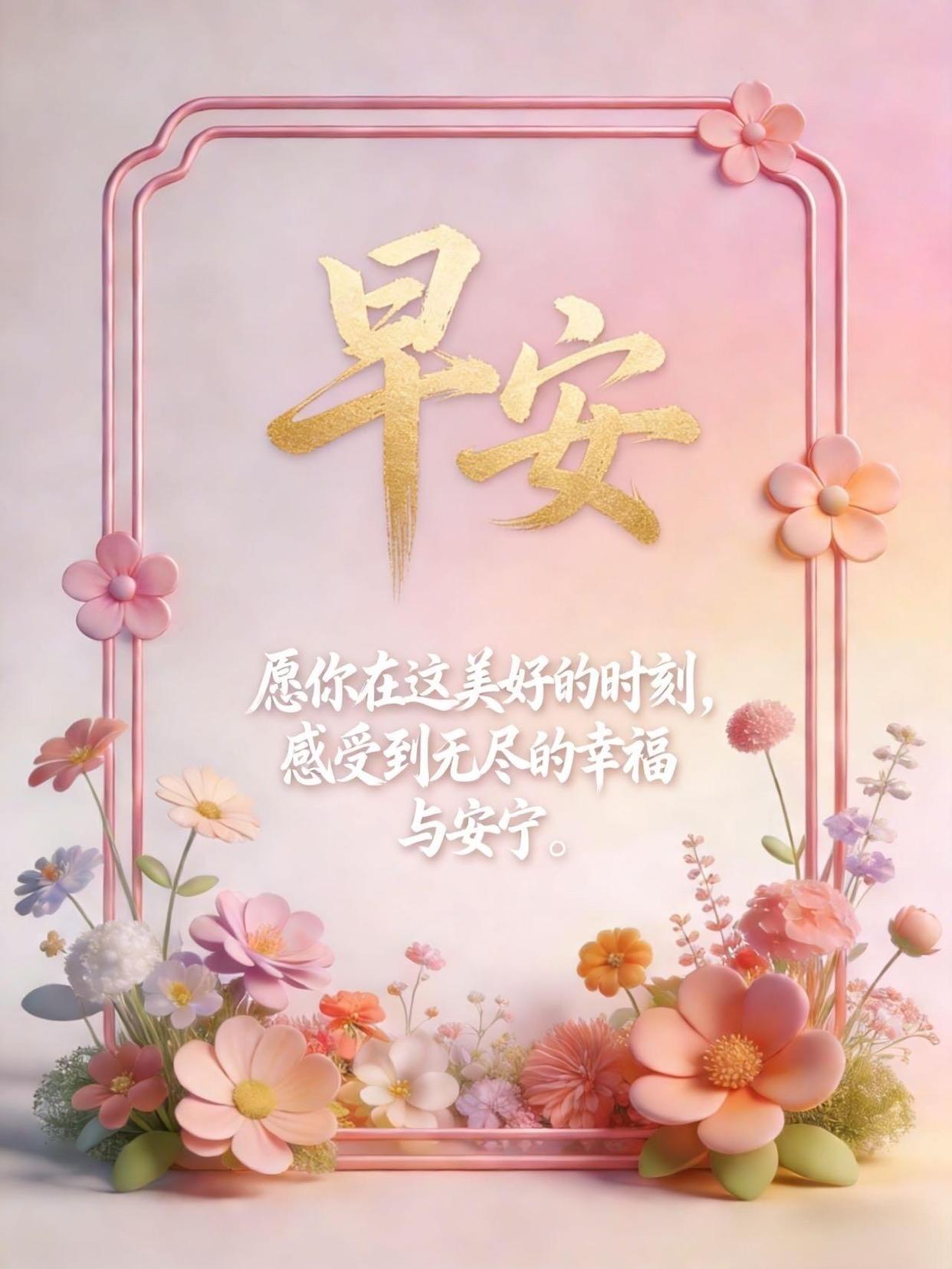 清晨祝福到,問候贈予你;憂愁皆消散,福祿緊相隨;閤家皆和樂,溫情愛綿綿;摯友互幫襯,心緒總高昂;前路福星照,財富積滿倉。早安!
