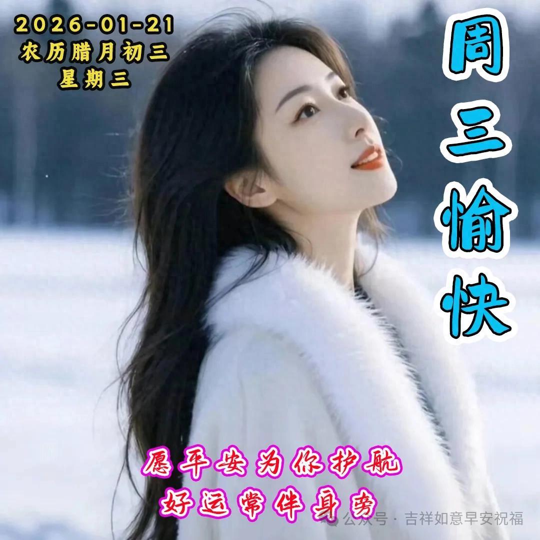 週三已至❄️,願我的祝福如同冬日裏的暖陽☀️,溫暖你的心房❤️,驅散刺骨寒冷,帶來一整年的幸福與安康。在這最冷的日子裏,願我的祝福化作熱騰騰的暖流♨️,流淌進你的心田,讓你感受到來自心底的溫暖。週三快樂,四季平安✅!