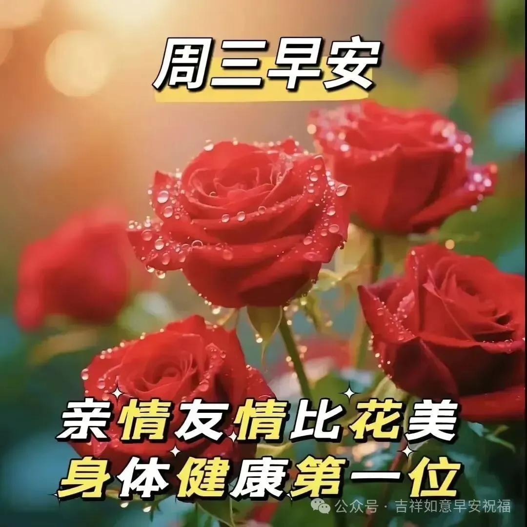 週三到❄️,牽掛到,天氣愈漸寒冷,思念愈發深切,遠方的朋友你可安好?天寒記得添衣保暖,降溫注意防寒御凍☃️!冬日的暖陽是我對你的問候☀️,飄飛的雪花是我對你的祝福❄️。傲雪的臘梅,爲我送去沁人的芳香,週三到了,願你健健康康!