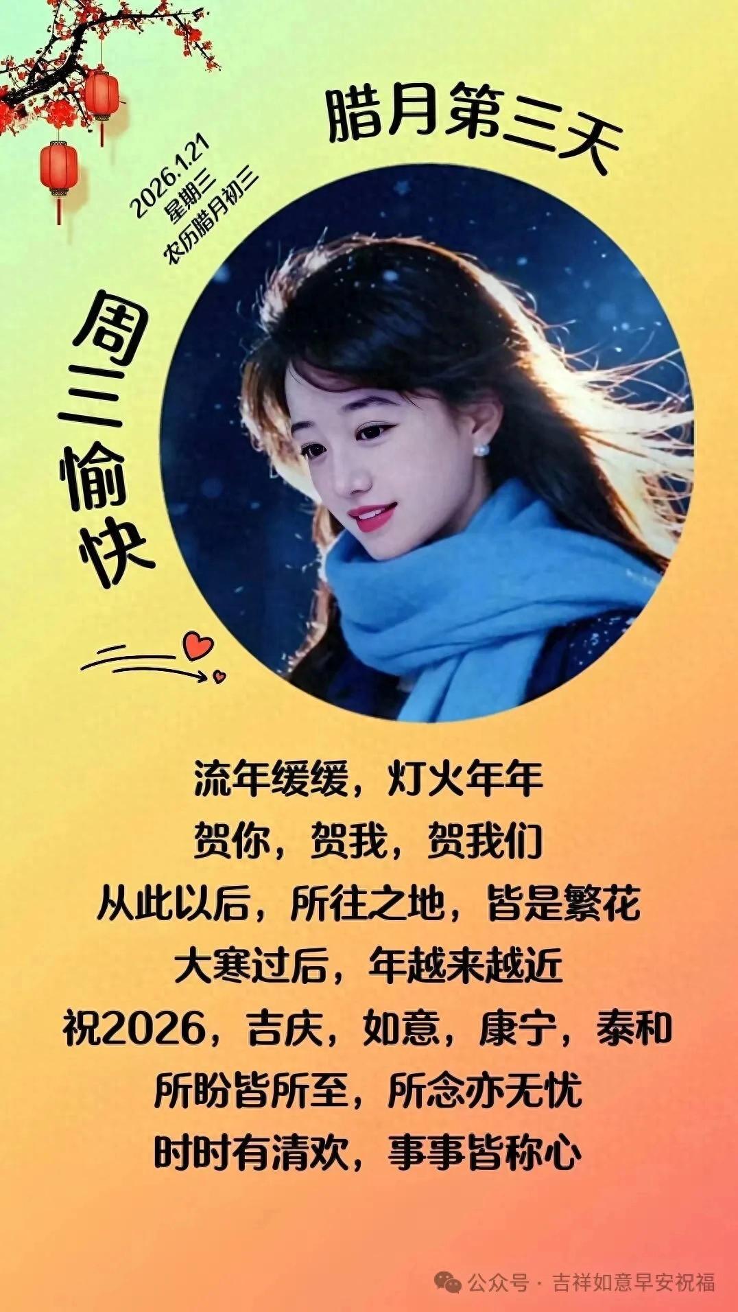 1月21日 臘月初三 週三早安美女問候美圖及文案精選