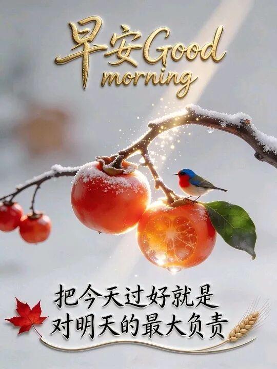 寒冬已至凝冷霜❄️,雁羣南歸葉染黃。白日尚暖晚風涼️,及時添衣莫着涼。呼朋喚友多珍重,清晨寄語送安康。祝君早安皆吉祥!