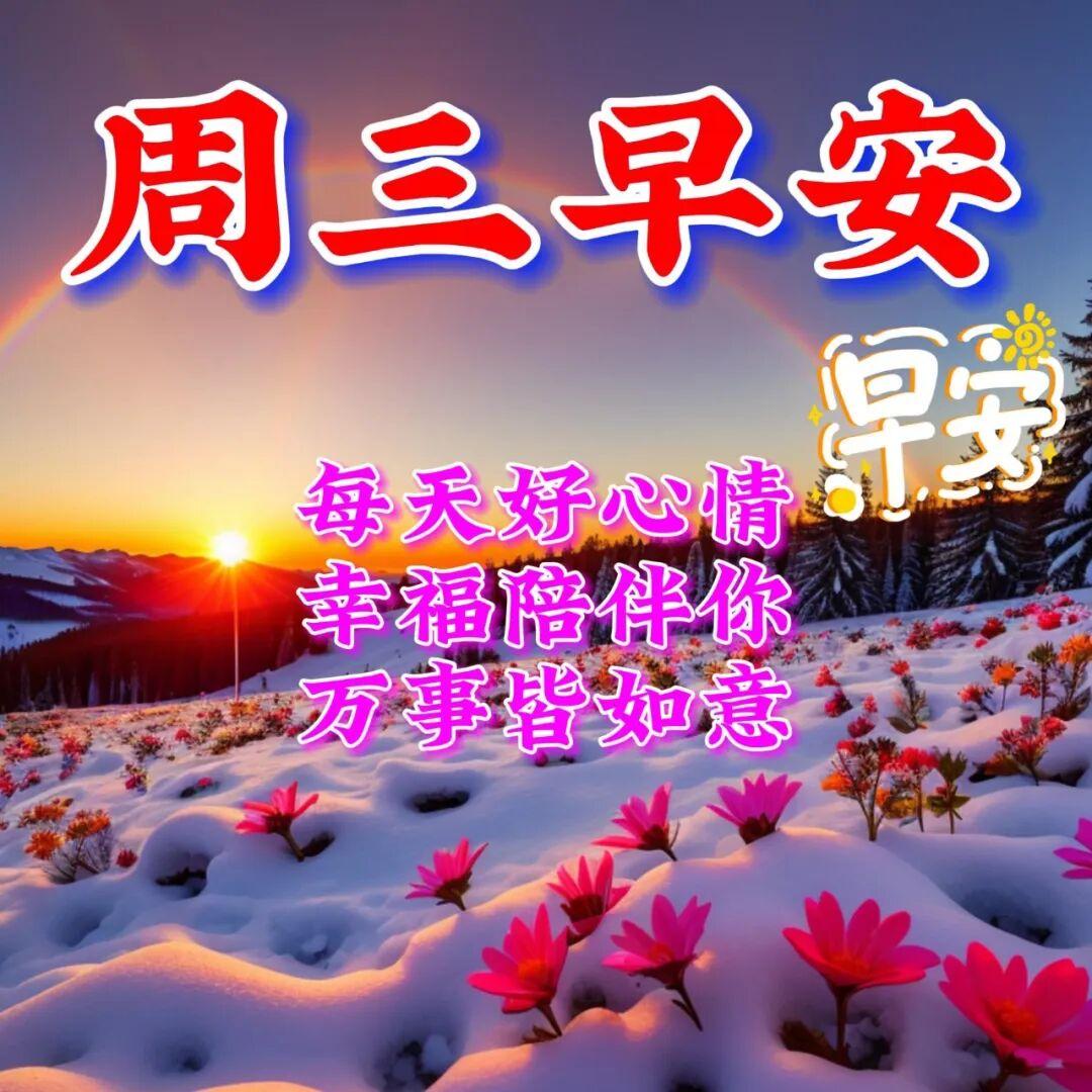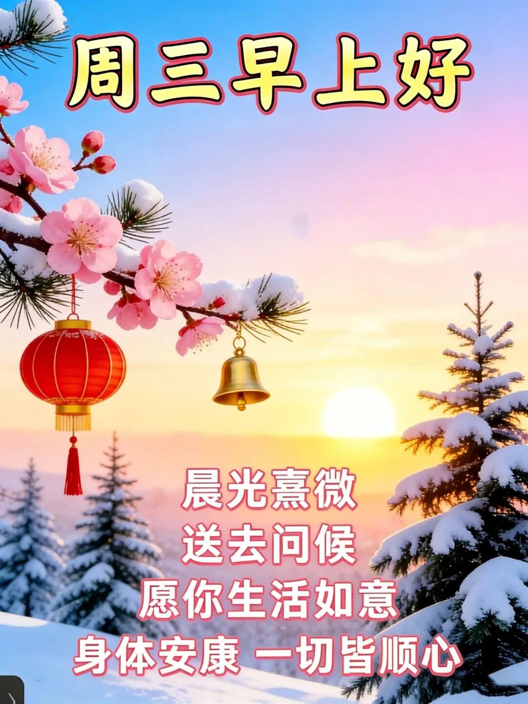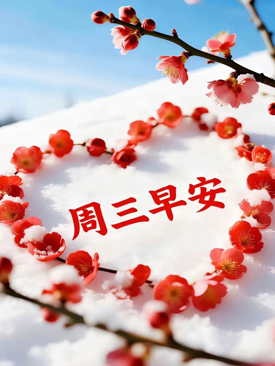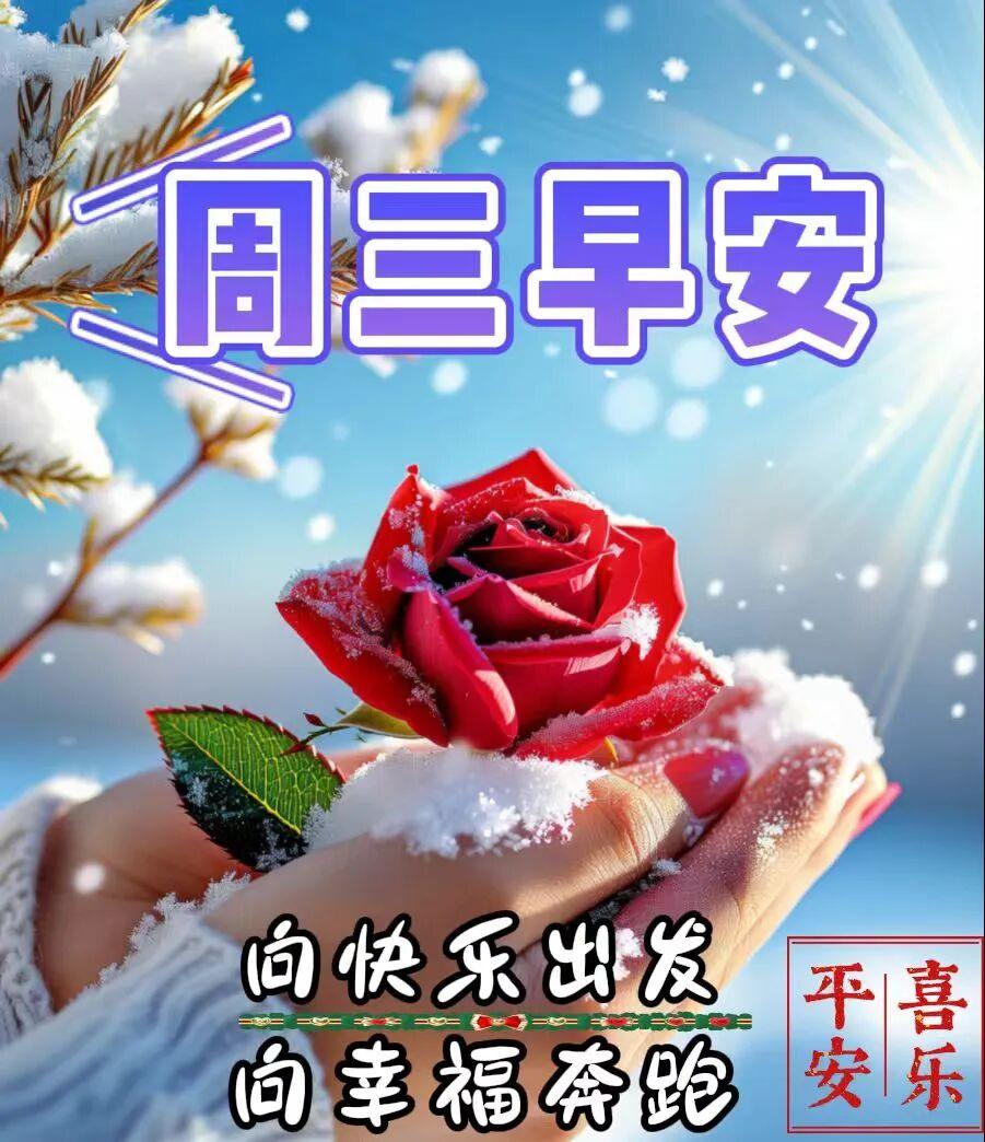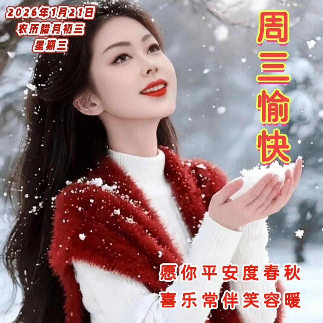 雪花紛飛❄️,週三來臨☃️。願我的祝福像一片片雪花❄️,輕輕飄落在你的肩頭,帶給你無盡的溫柔和幸福。祝你週三快樂,溫暖如初☀️!